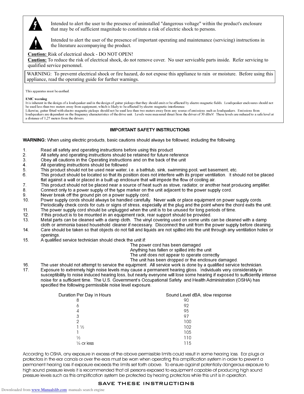 protectors in the ear canals or over the ears must be worn when operating this amplification system in order to prevent a