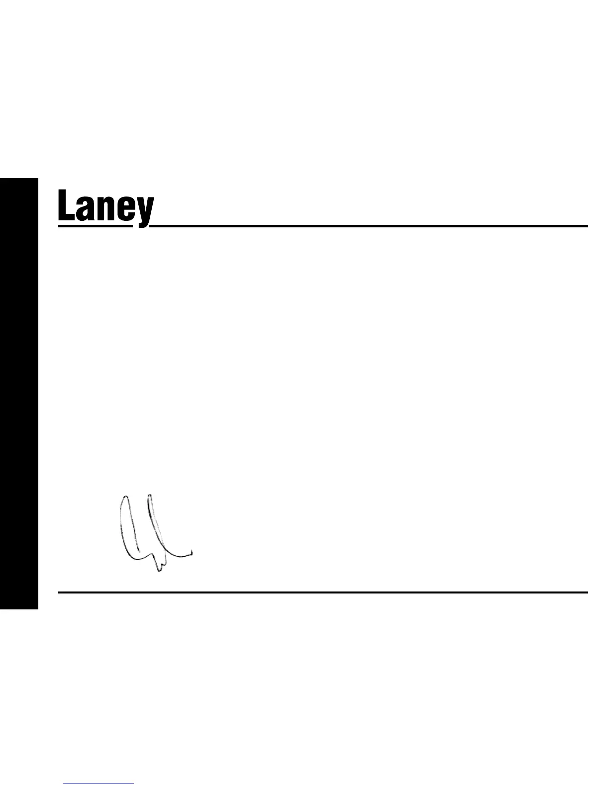 Thank you very much for purchasing your new Laney product and becoming part of the worldwide Laney