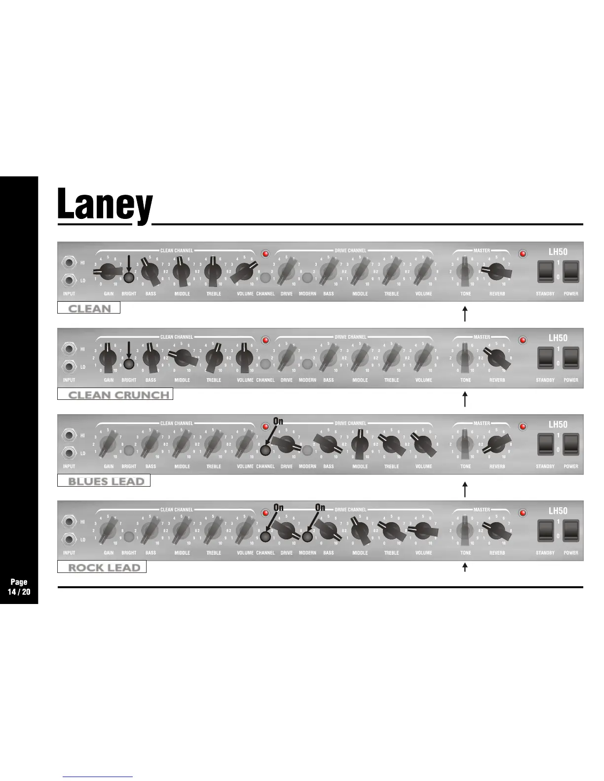 Laney LH50 - Quick Start Settings; Recommended Clean and Crunch Settings; Recommended Lead and Rock Settings