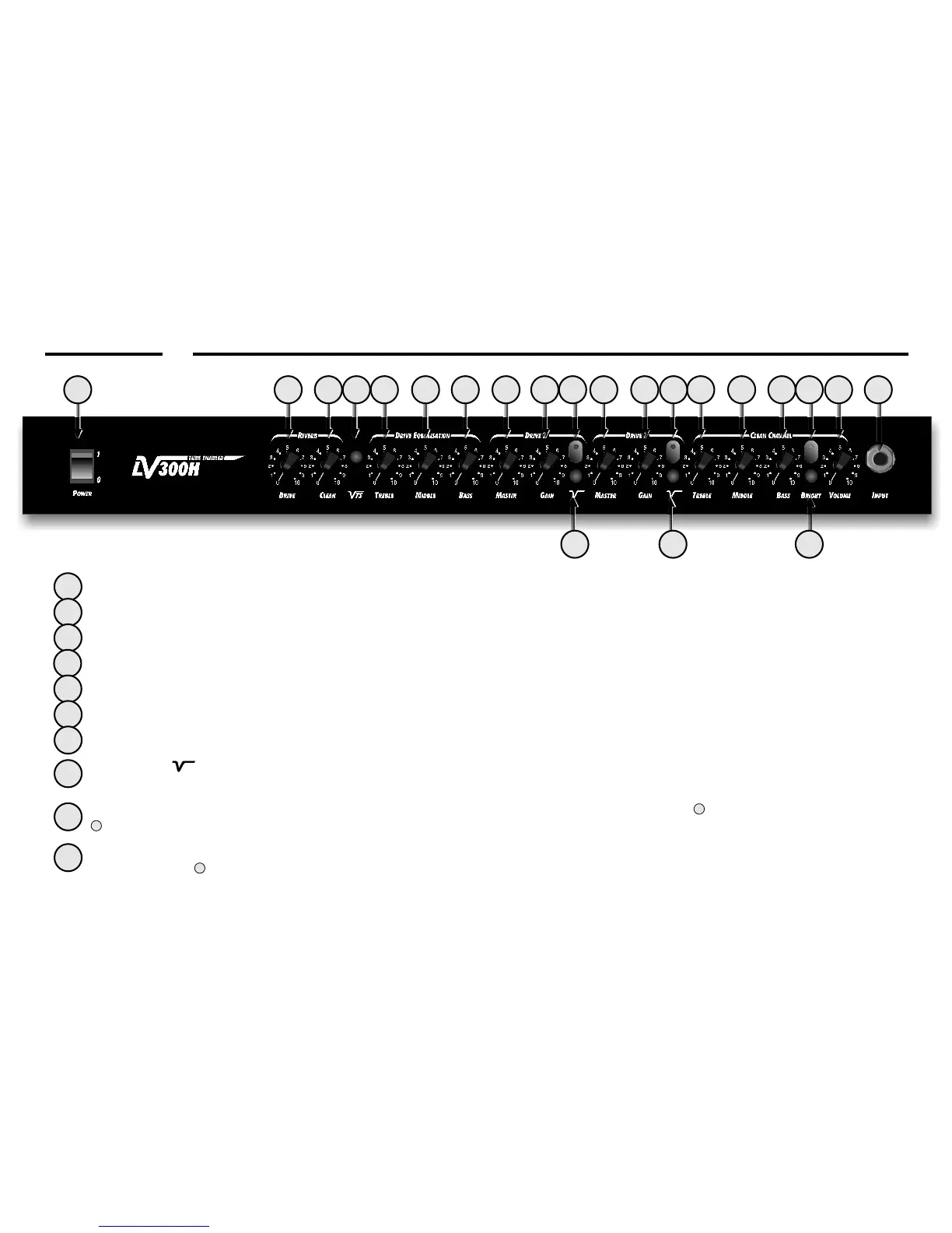 Main power switch for the unit. Note: One of the three channel led’s will always be lit when the amplifier is switched on.