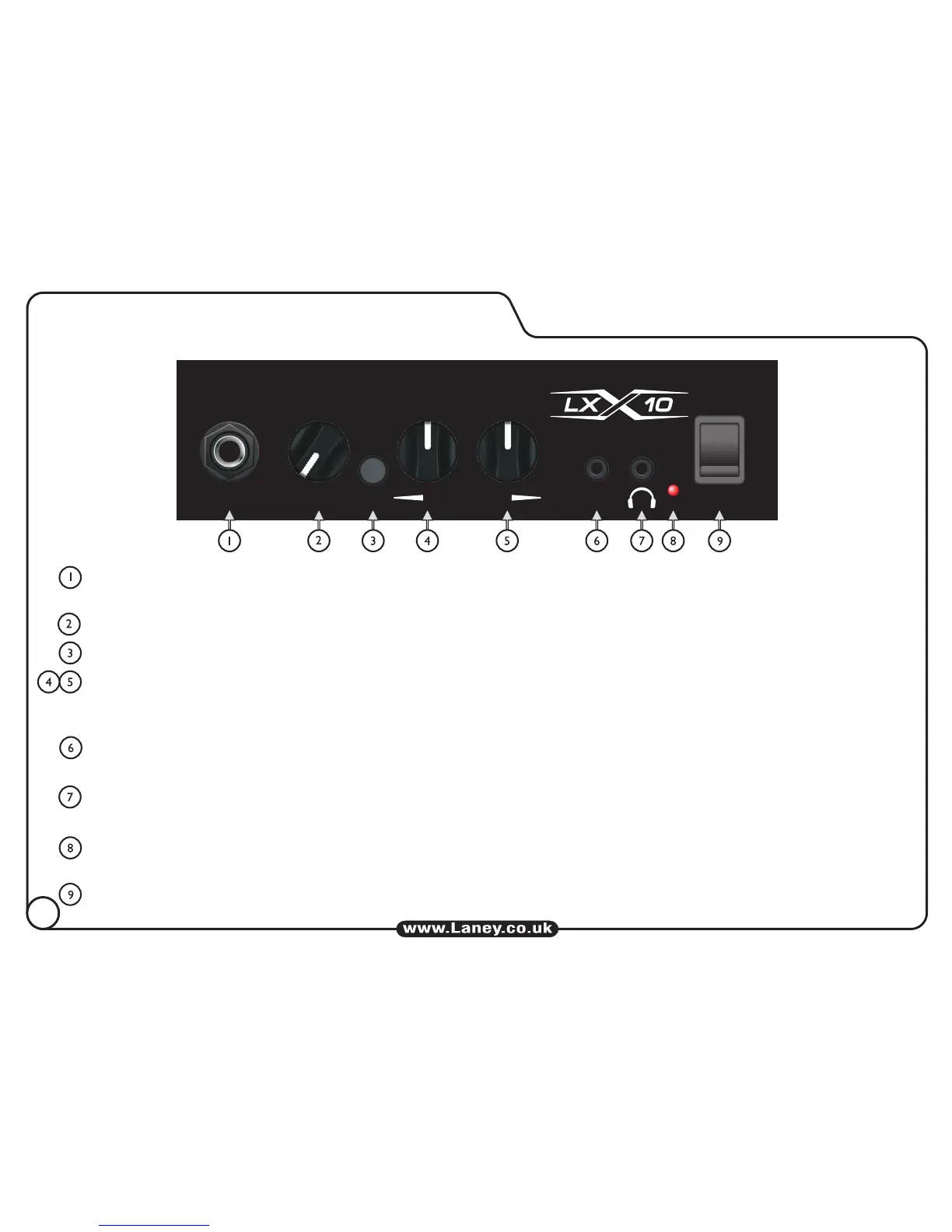 Power LED: This will illuminate when the power switch is operated, indicating the presence of mains