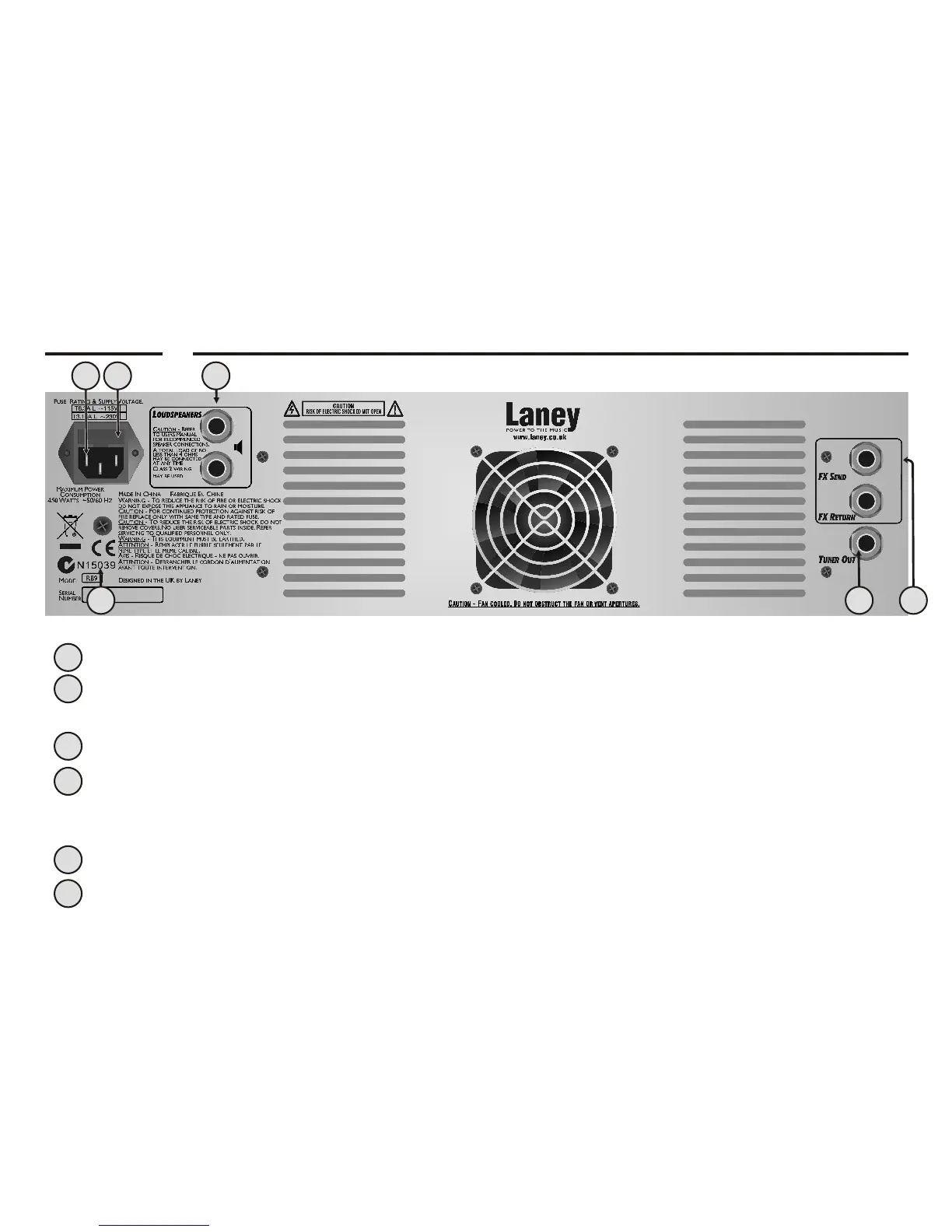 Laney RB9 - Rear Panel Controls and Connections; Power Inlet, Fuse, and Serial Number; Speaker Outputs and Impedance; Tuner Out and FX Loop