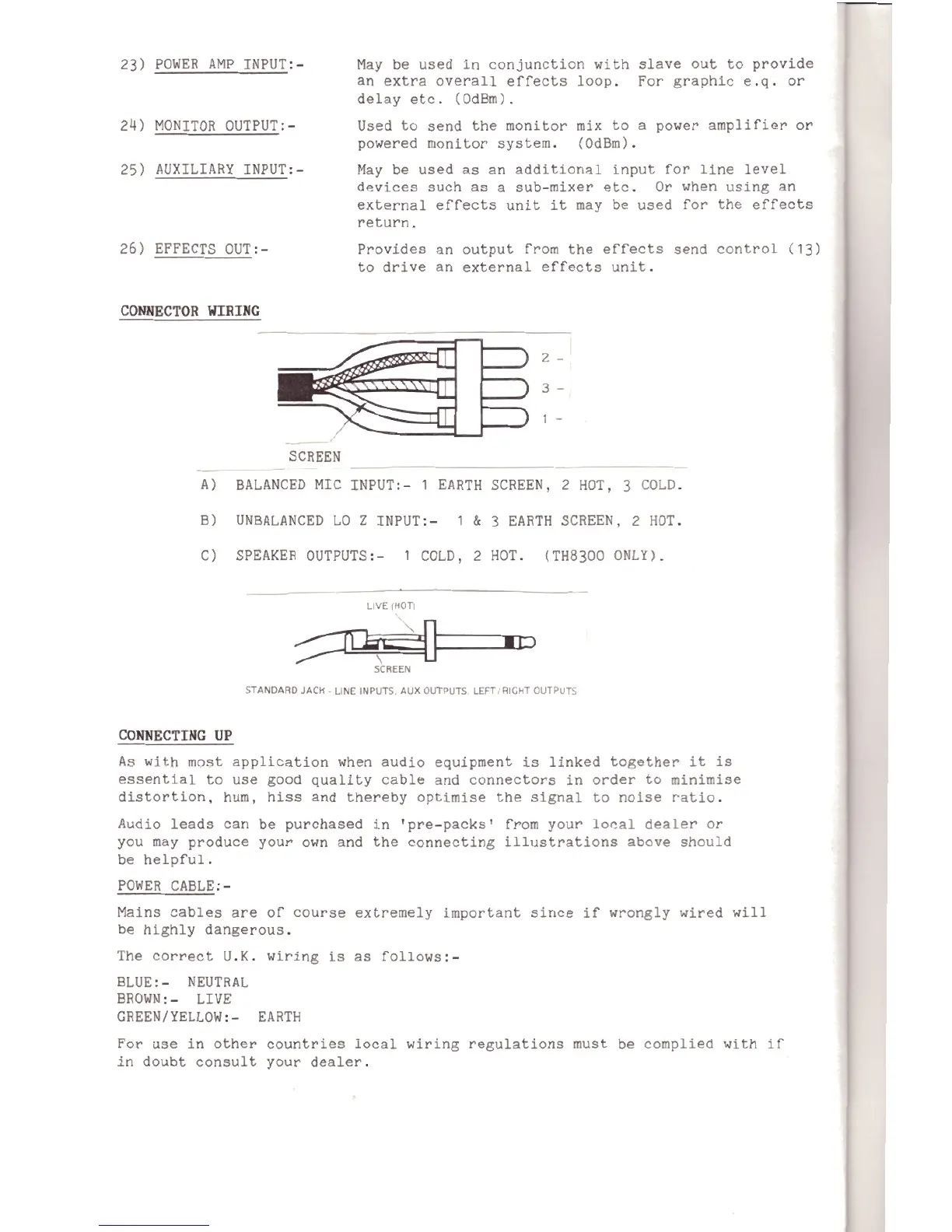 Laney TH6150 - Laney Mixer Amplifier Connectivity and Wiring; Connector Wiring Details; Connecting Up Guide