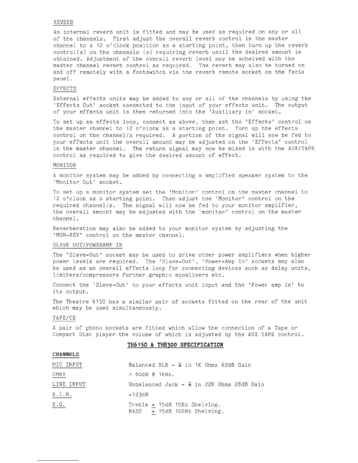 Laney TH6150 - Laney Mixer Amplifier Specifications