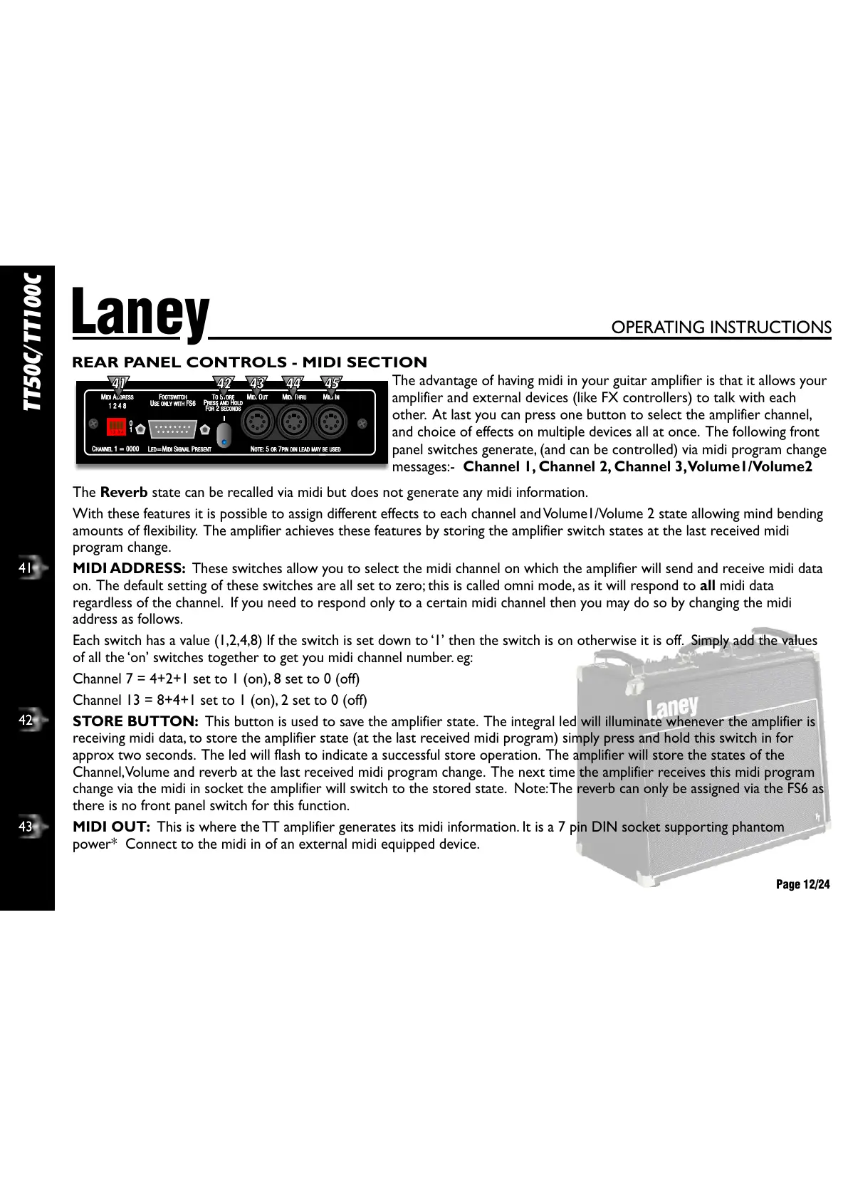 amounts of flexibility. The amplifier achieves these features by storing the amplifier switch states at the last received midi