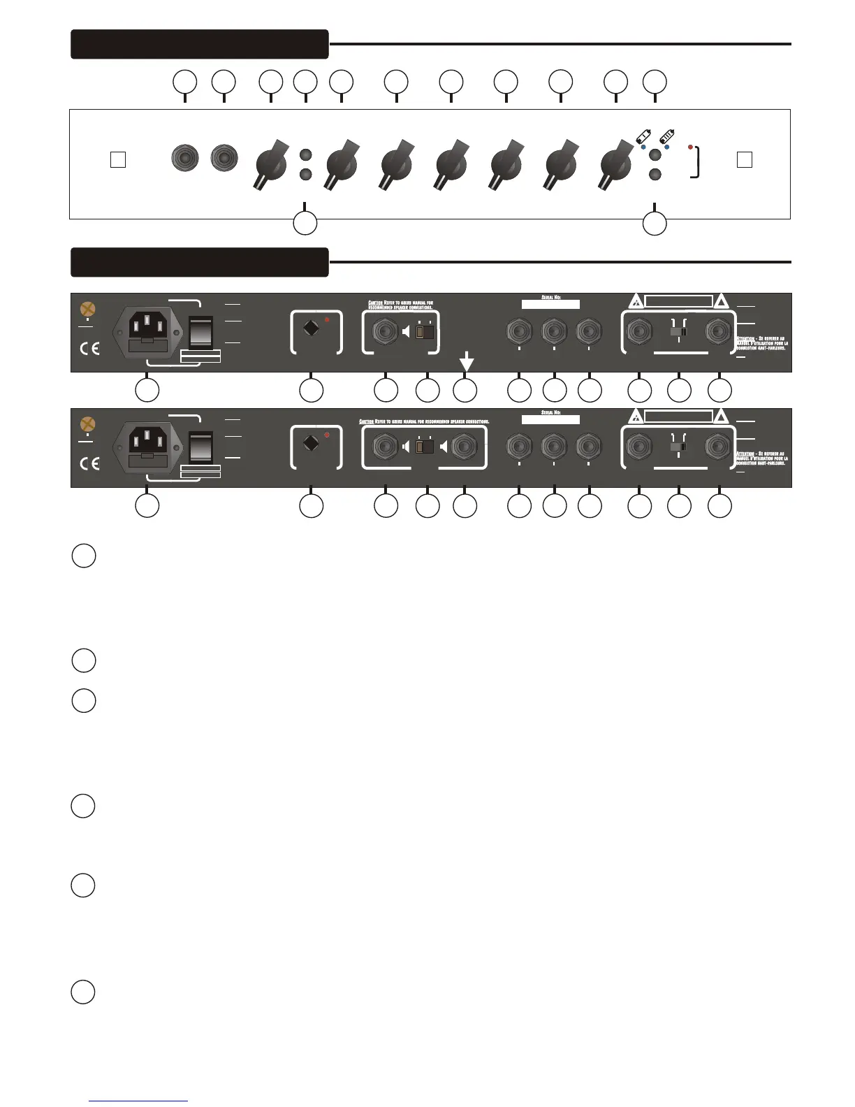 POWER SOCKET + POWER FUSE HOLDER: For connecting amplifier to mains power-supply. The fuse protects the