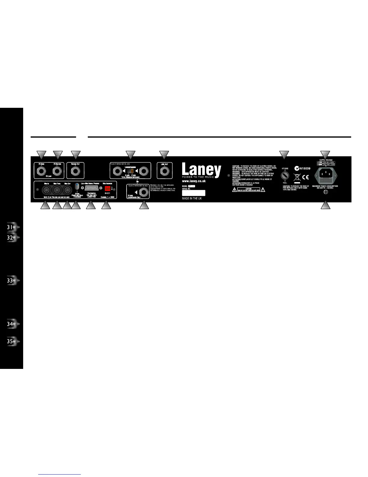 LOUDSPEAKER SOCKETS: These dual jack sockets should be used to connect your loudspeaker cabinet/s.