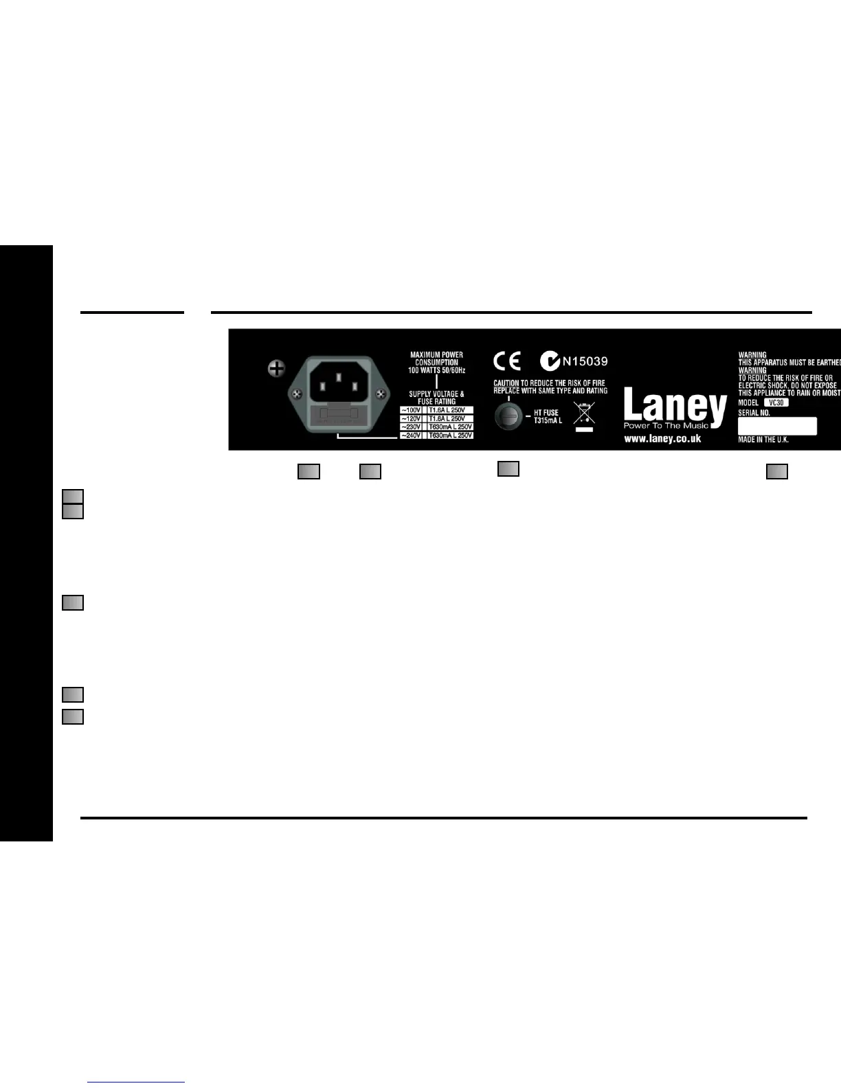 FOOTSWITCH SOCKET: Provided for the connection of a Laney FS2 footswitch (optional) .This allows you to remotely