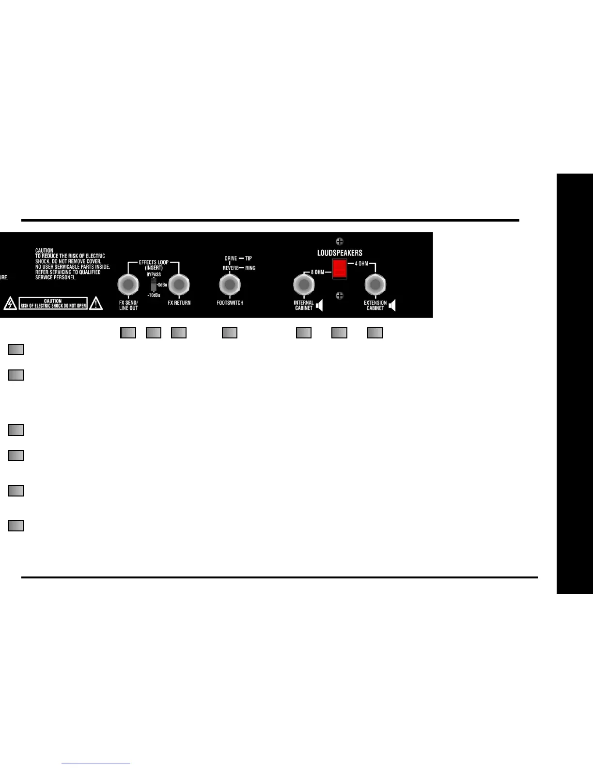 EFFECTS LOOP: RETURN: Connect the output from your external effects to this socket. The effects loop allows you to