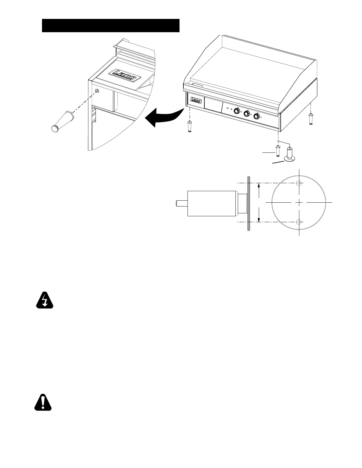 of the griddle. Install them into the threaded