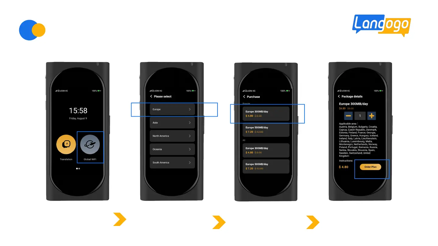 Langogo Genesis - Purchase Data Plan; Select Data Plan and Area