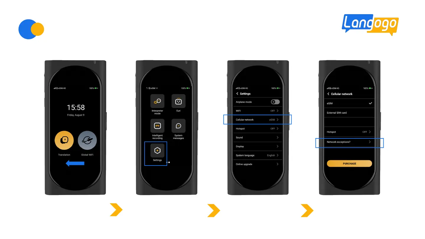 Langogo Genesis - Troubleshoot eSIM Network; Check Network Exceptions