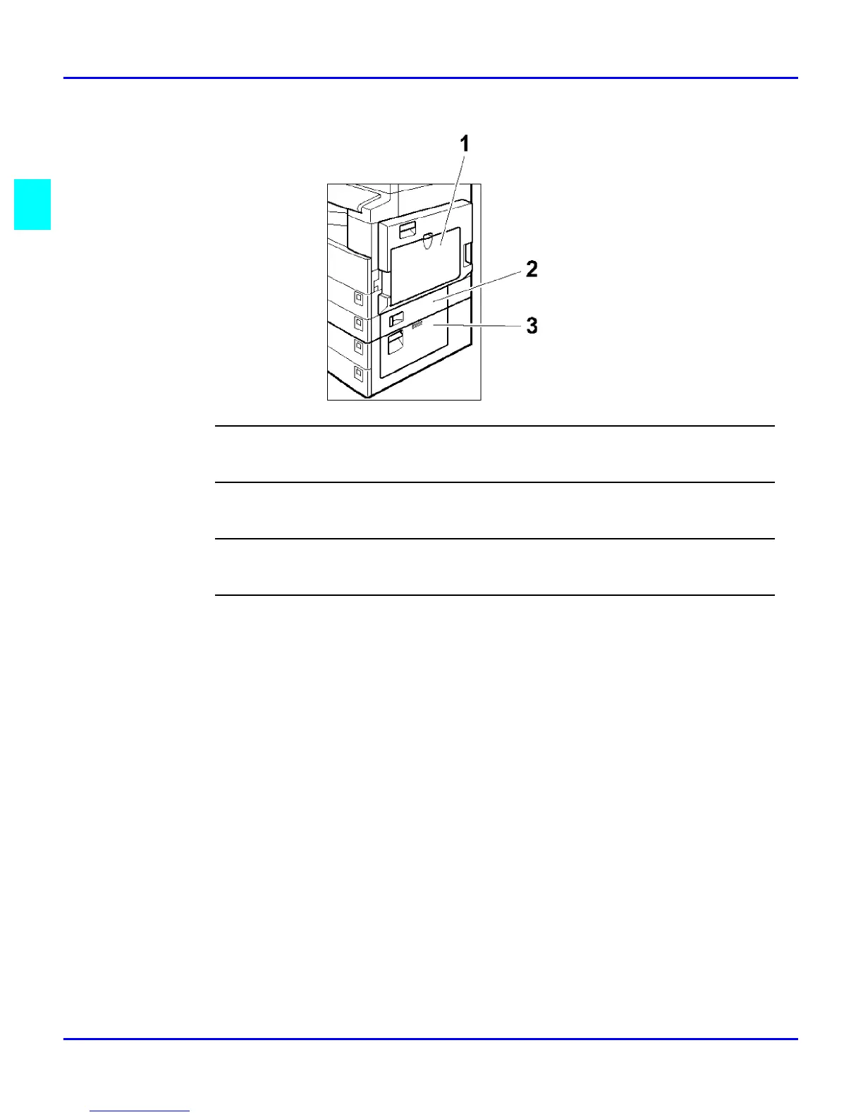 Open this cover to remove jammed paper from the lower paper tray or optional system stand.