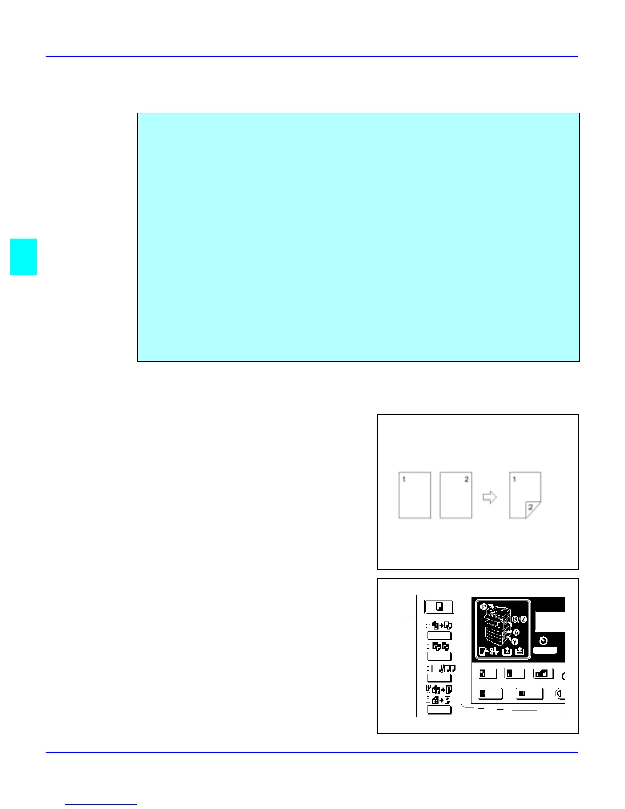 1 Sided to 2 Sided: This mode makes two-sided copies from one-sided originals.