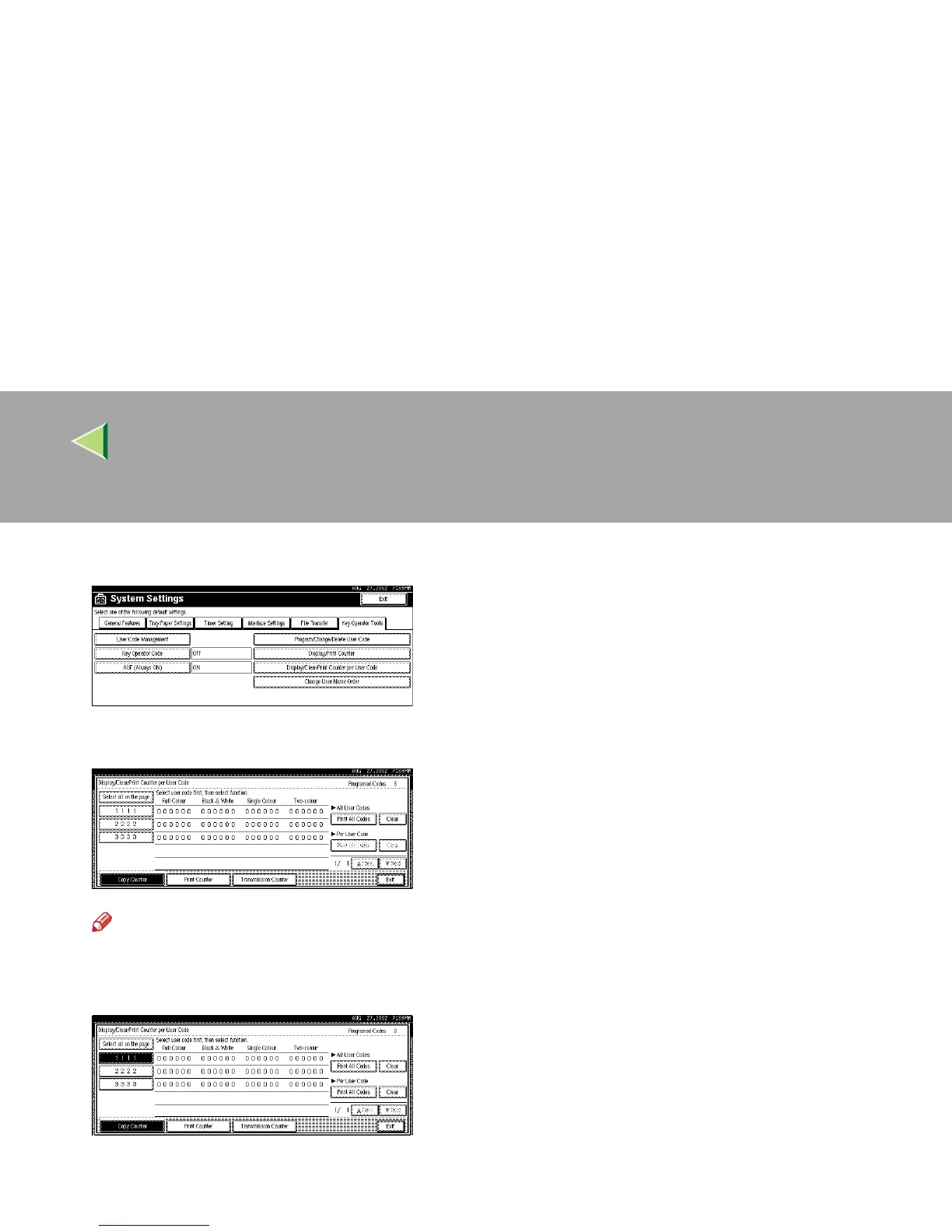 Press [Display/Clear/Printer Counter per User Code].
