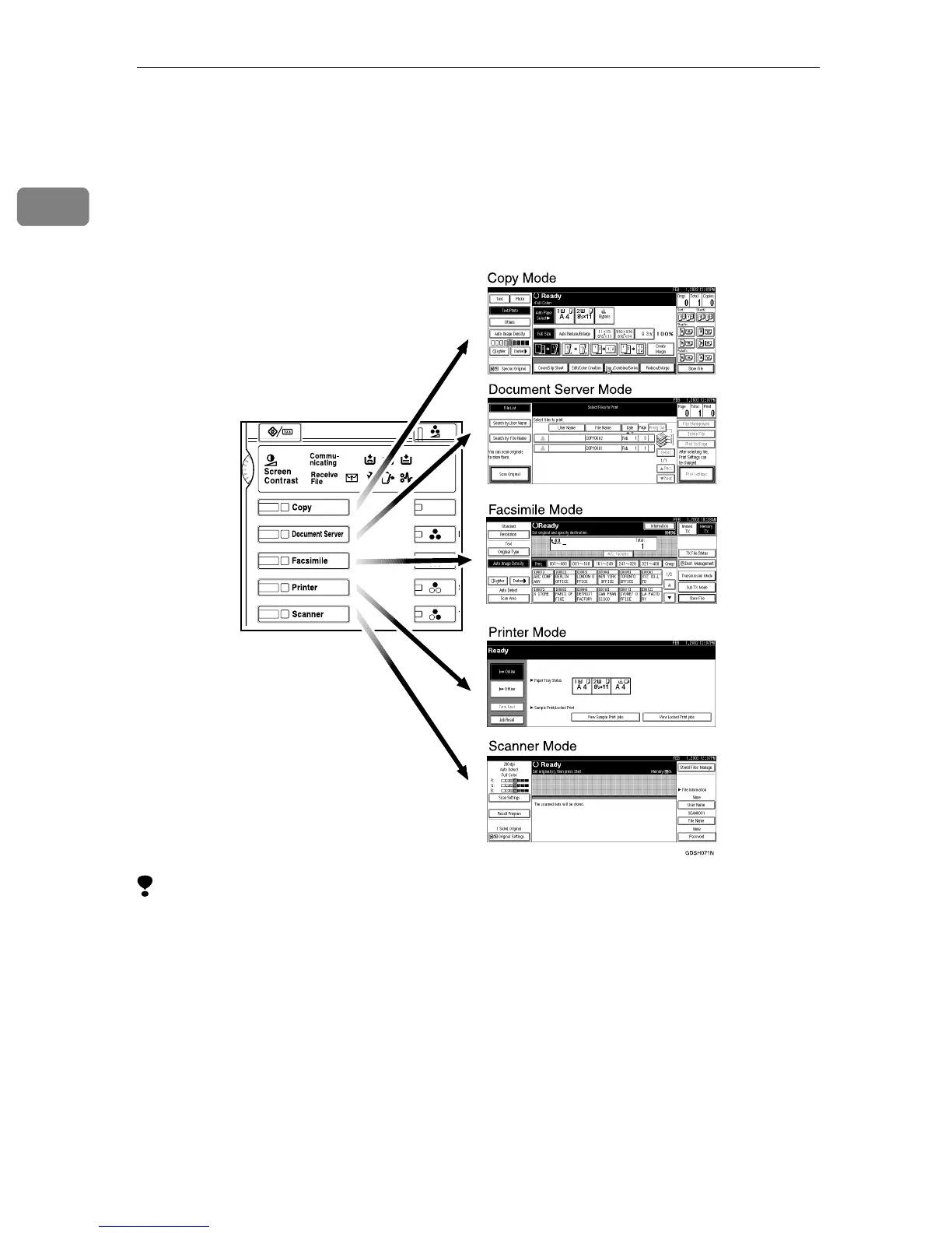 This machine is a copier, facsimile, printer and scanner. If the machine is not in