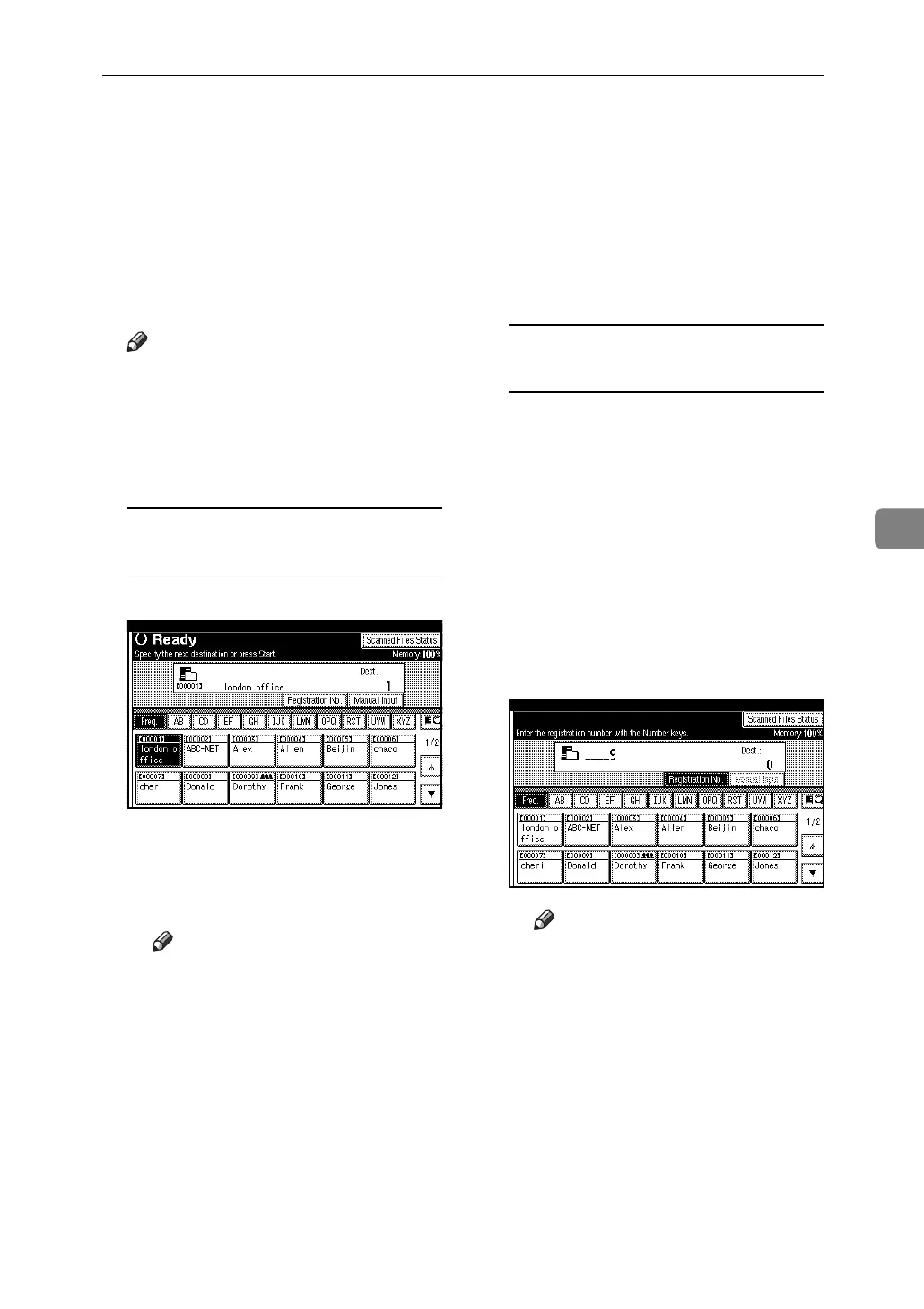 Selecting a destination from the