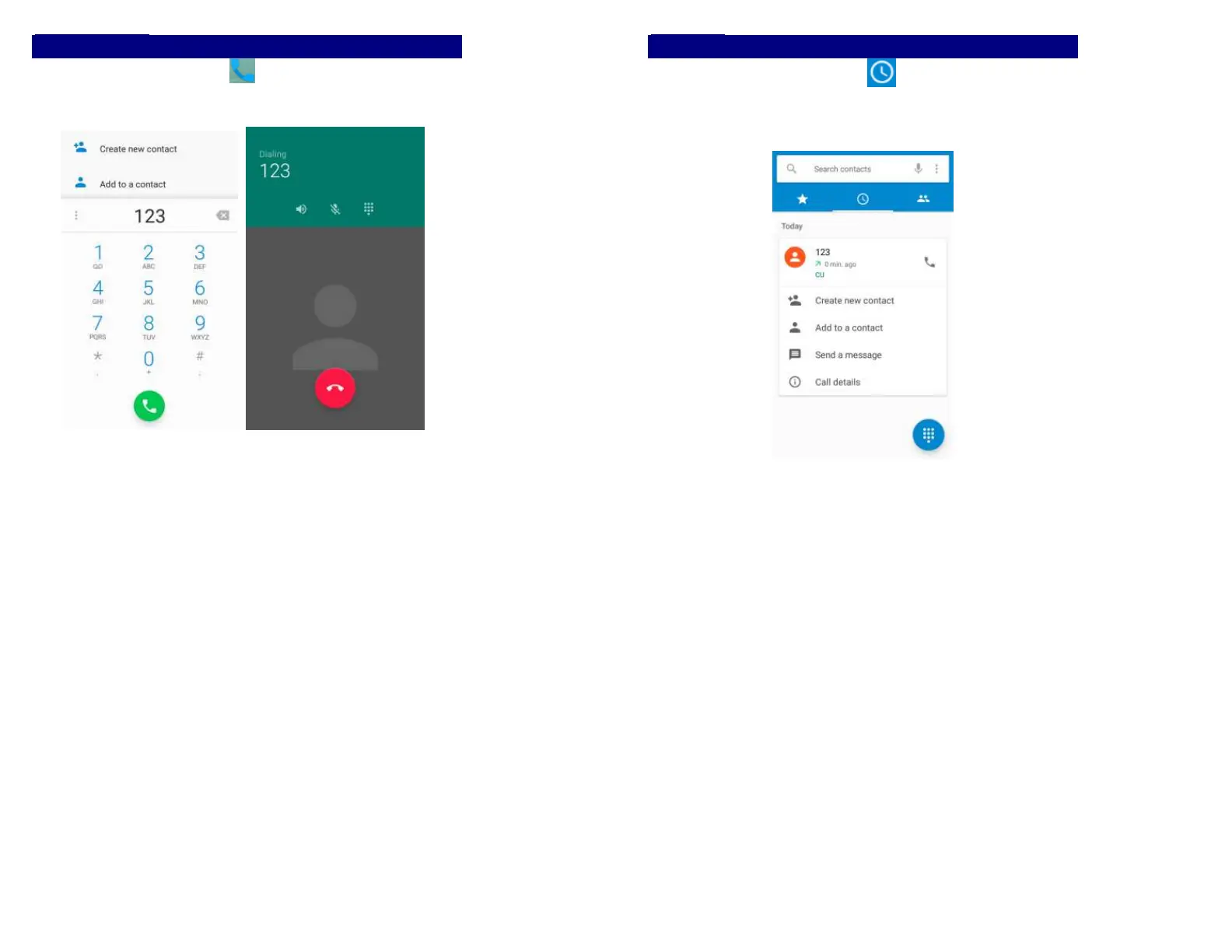 In call log options, you can Make calls, Create new contact