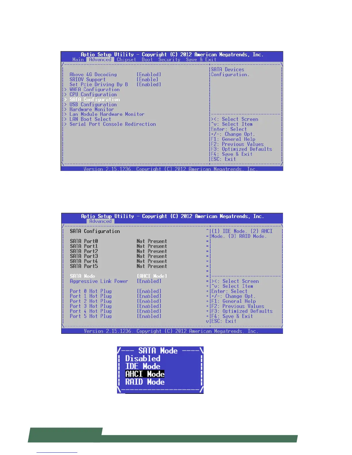 SATA Port 0 - 5: display SATA device information. If no device detected, it will show “Not Present”.