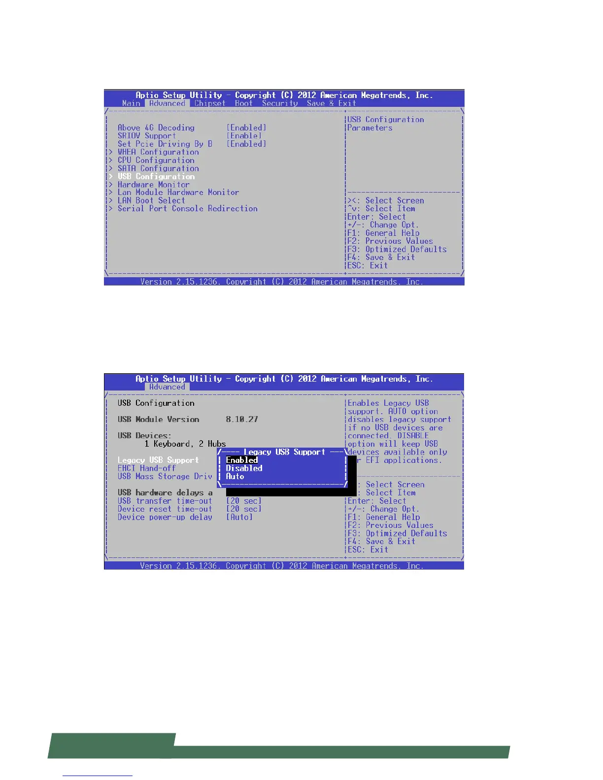 Legacy USB Support: enables legacy USB support. “Auto” option disables legacy support if no USB devices are