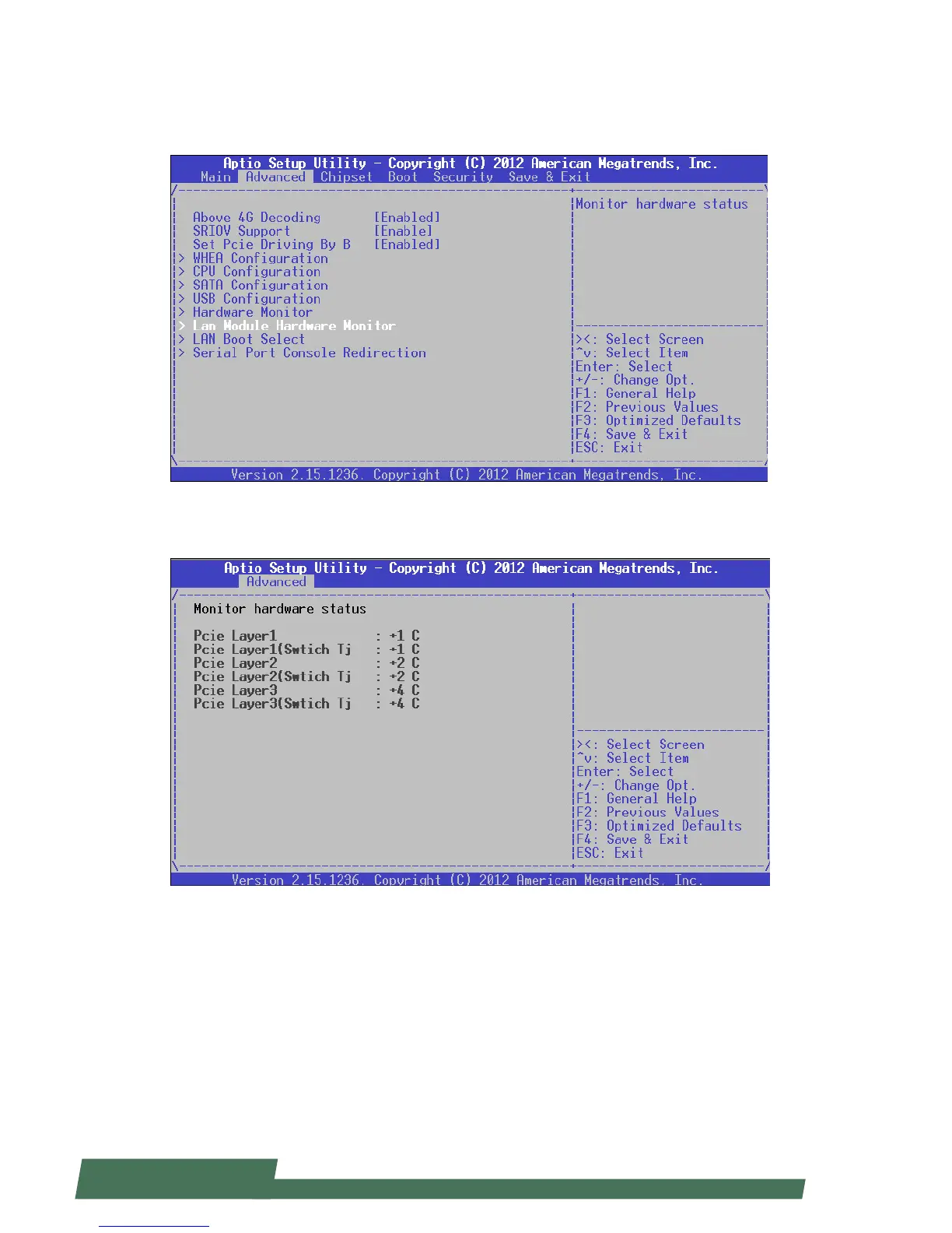 Once entered, you may view PCIe layer information for the connected LAN modules.