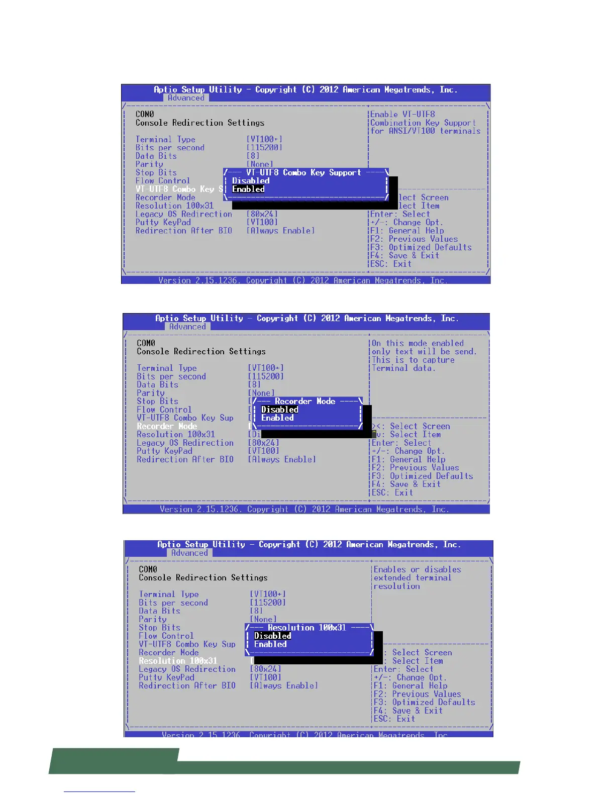 Resolution 100 x 31: select “Enable or “Disable” for extended terminal resolution.
