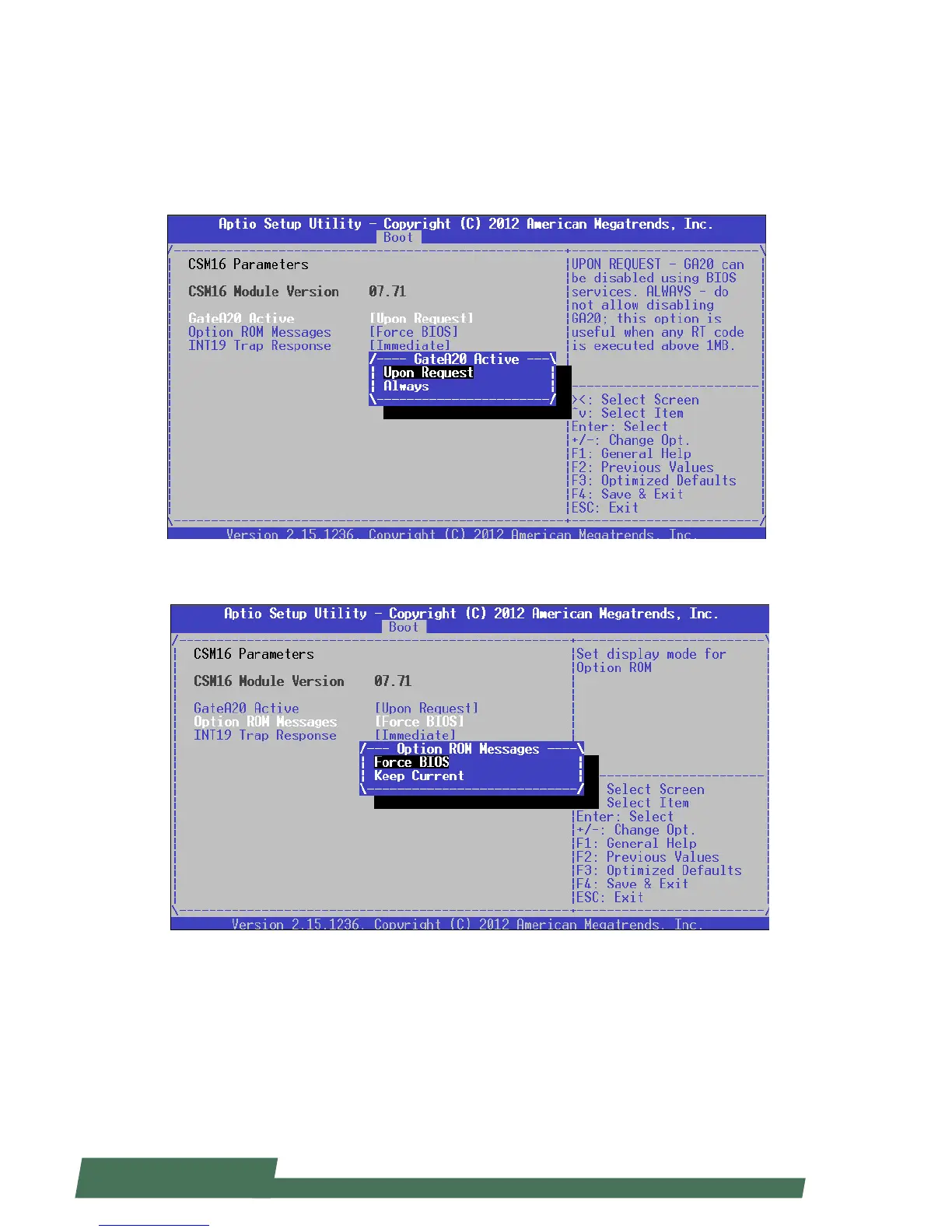 Option ROM Message: select “Force BIOS” or “Keep Current”. This option sets display mode for Option ROM.