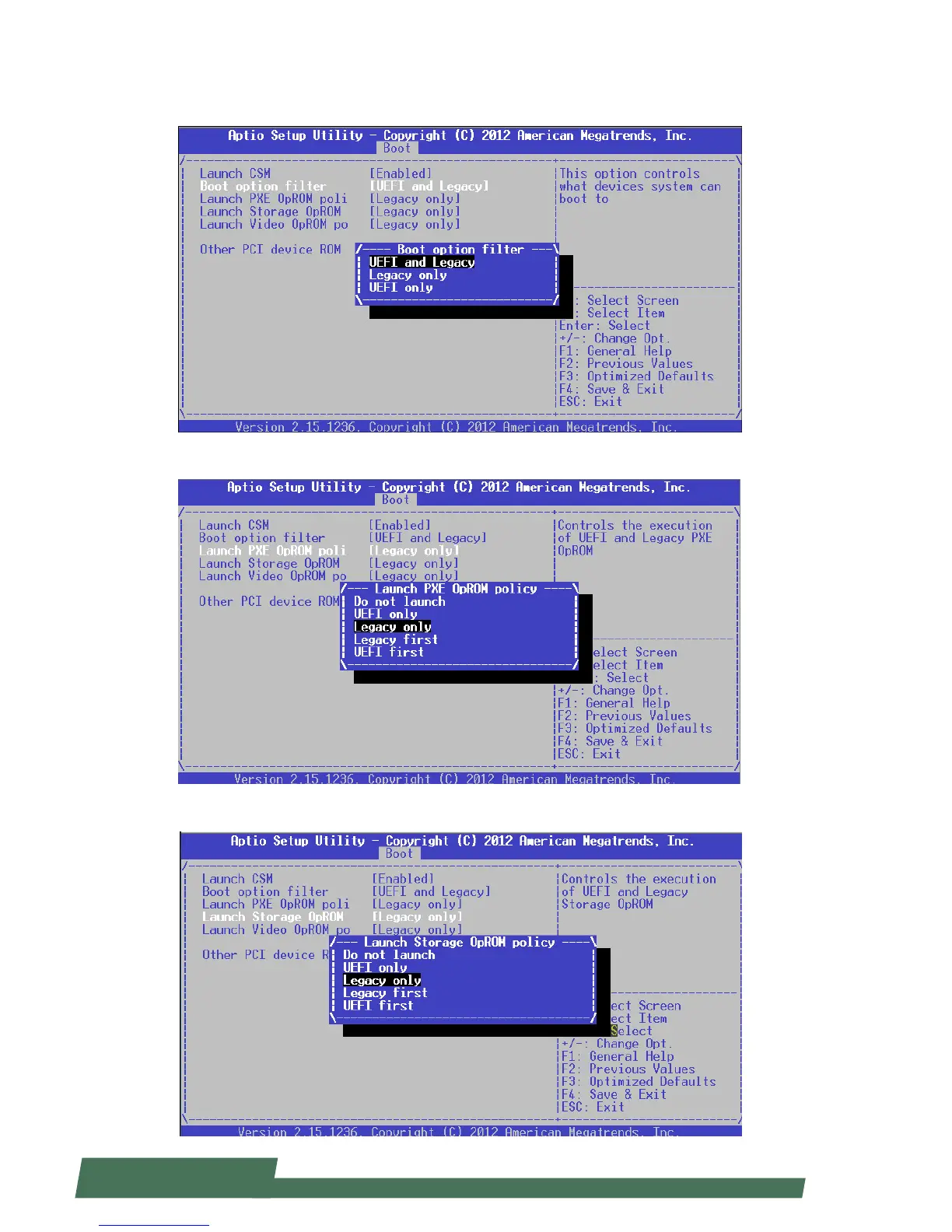 Launch PXE OpROM Policy: this option controls the execution of UEFI and Legacy PXE OpROM