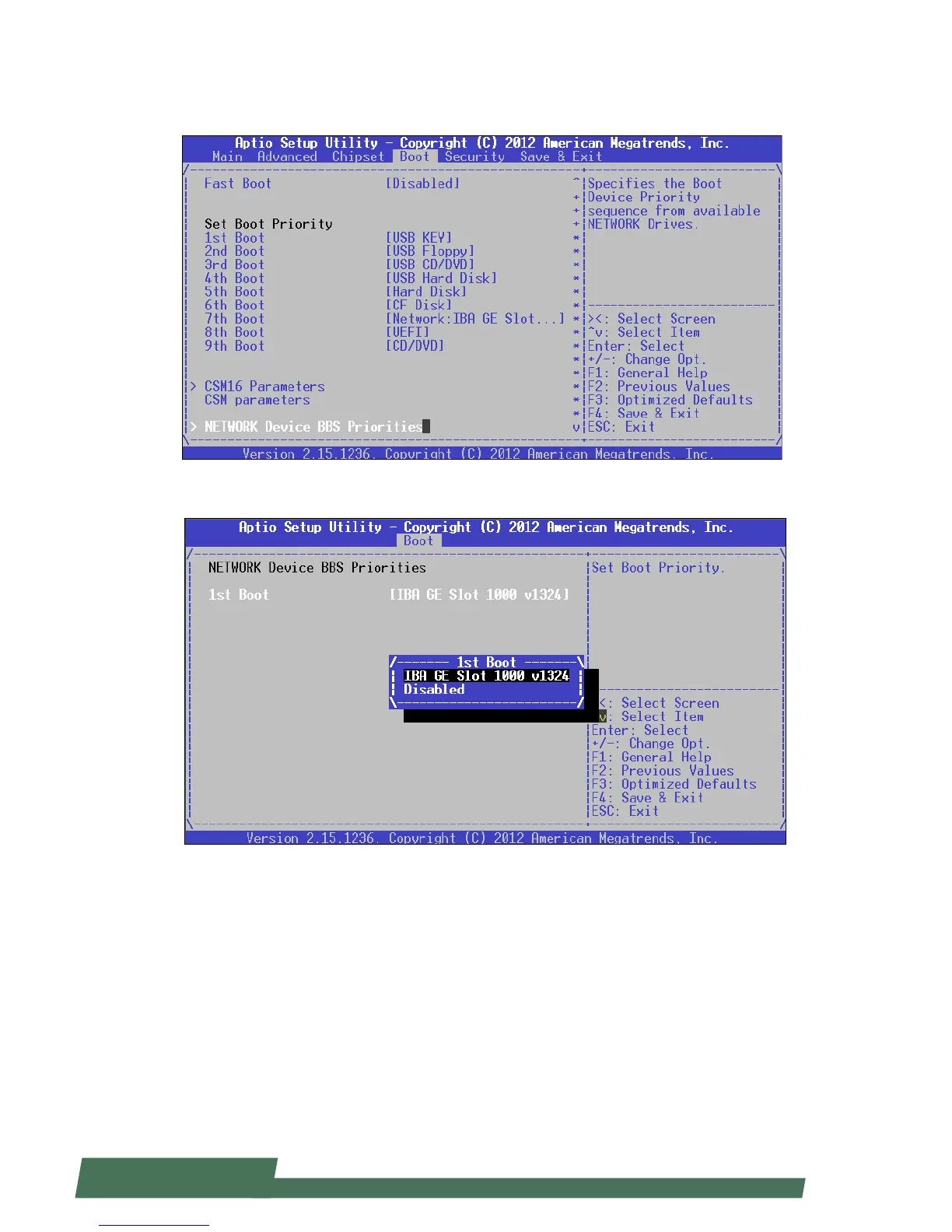 1st Boot: set boot priority
