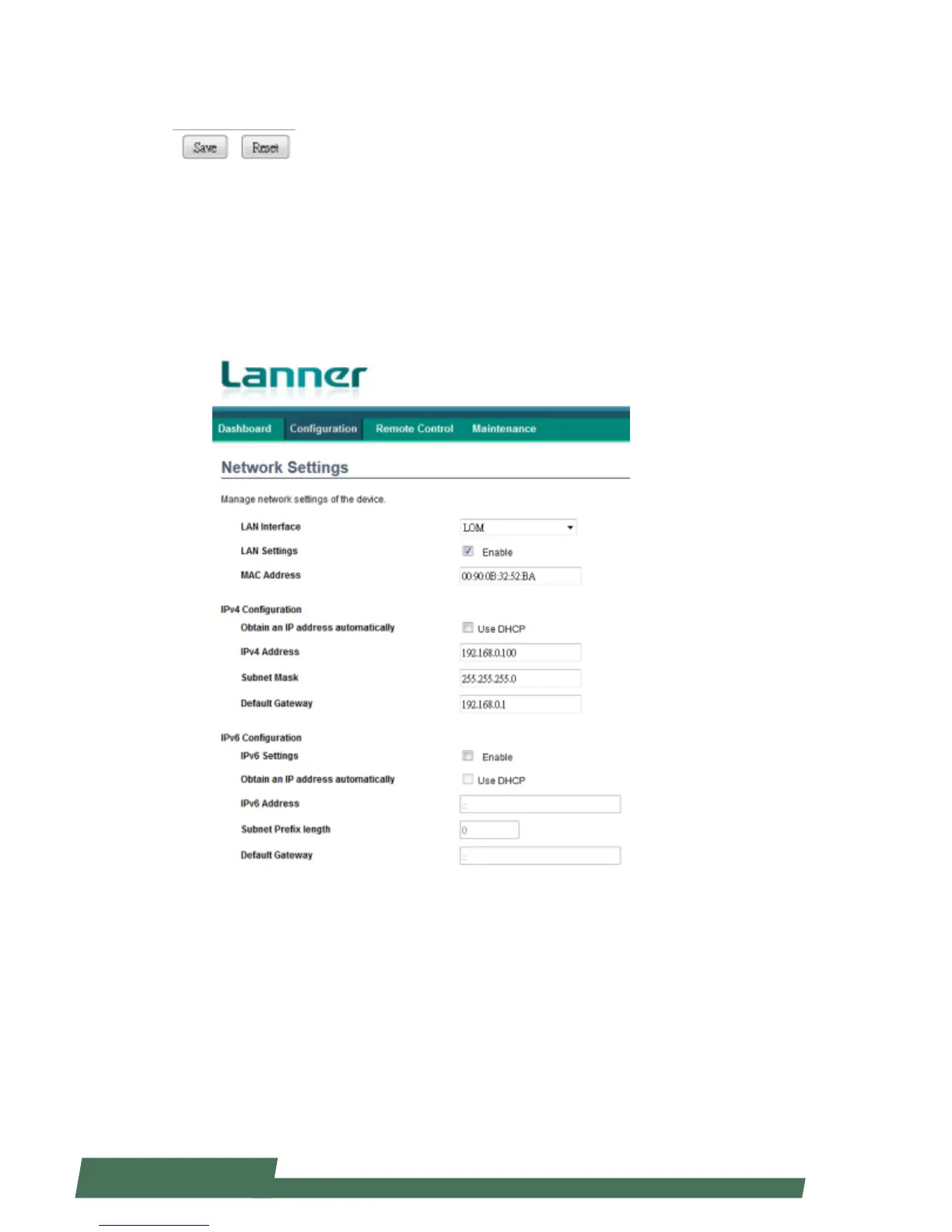 IPv4 Address: enter the IP address for IPv4 network if DHCP is not enabled