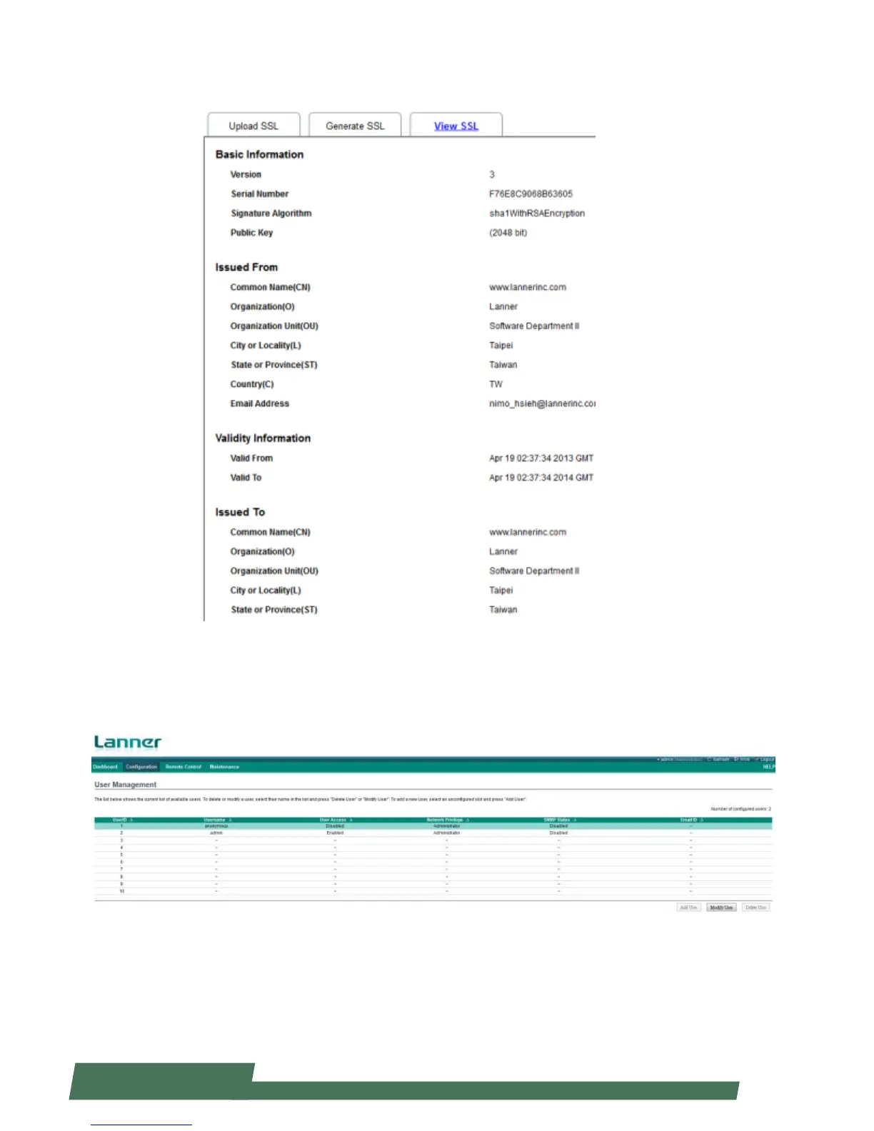 Click “User Management under Configuration to access current list of available users. You may add, modify or delete