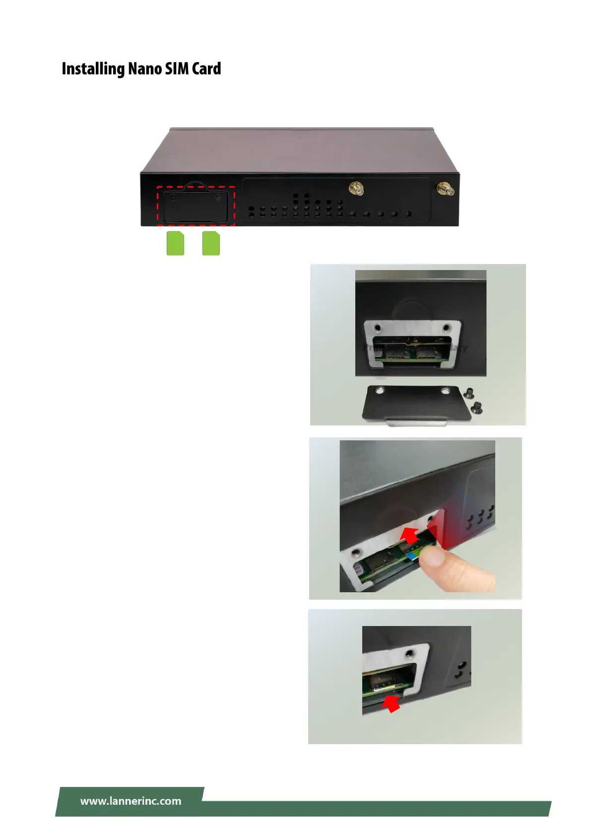 The SIM slot on front panel supports an LTE module. The SIM socket supports the push-push mechanism,