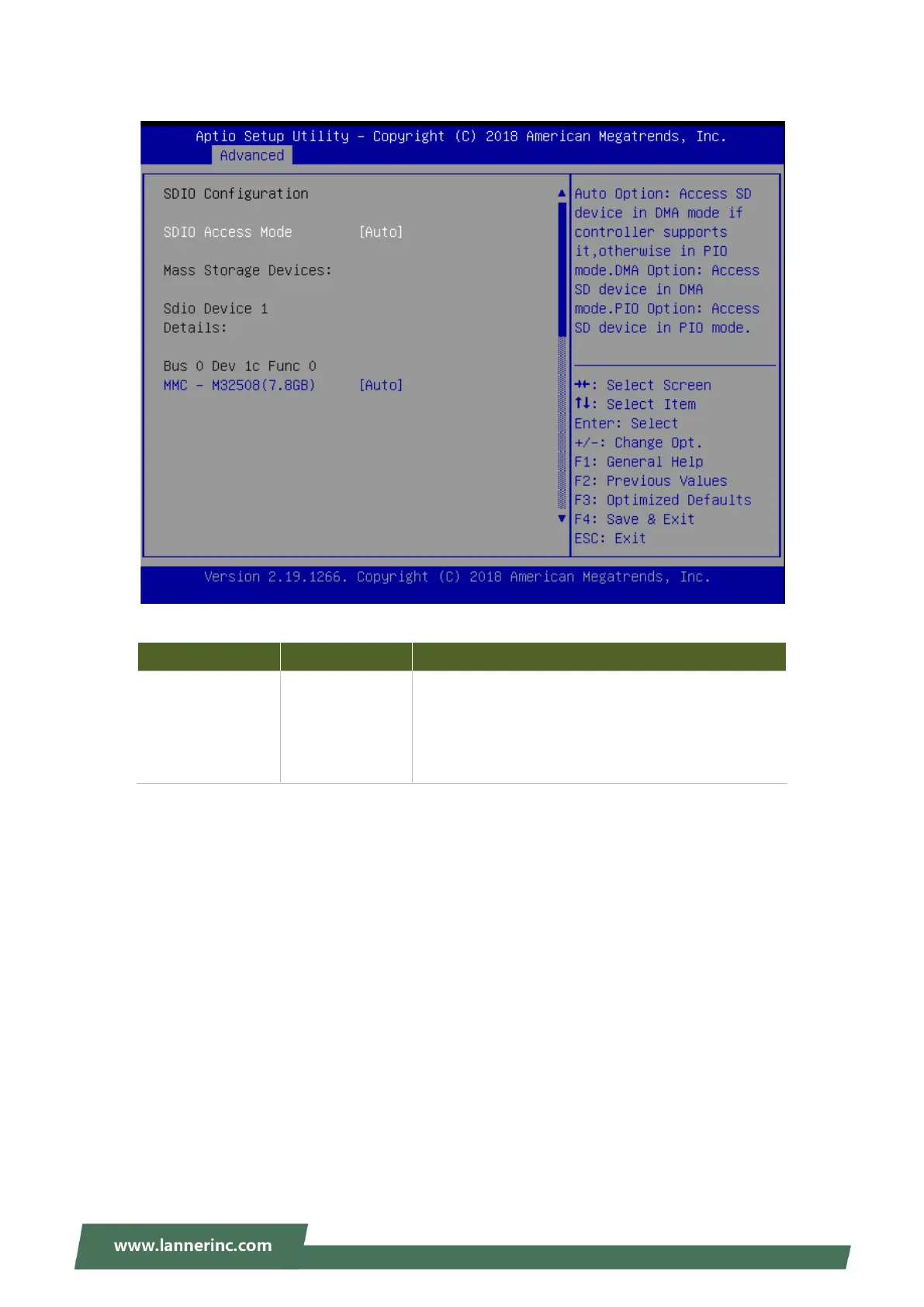 Lanner NCA-1516 - SDIO Configuration; SDIO Access Mode Settings