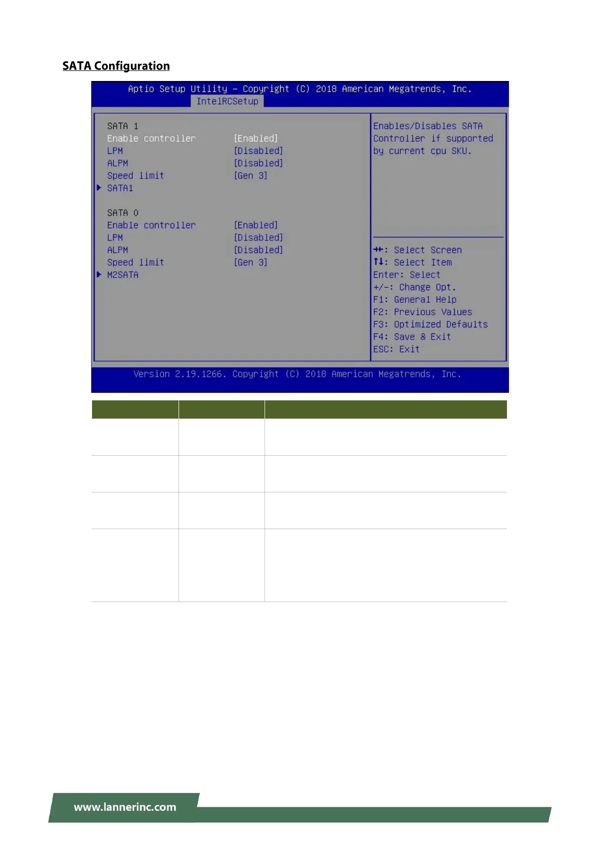 Lanner NCA-1516 - SATA Configuration Details; SATA 1 Controller Settings; SATA 0 Controller Settings