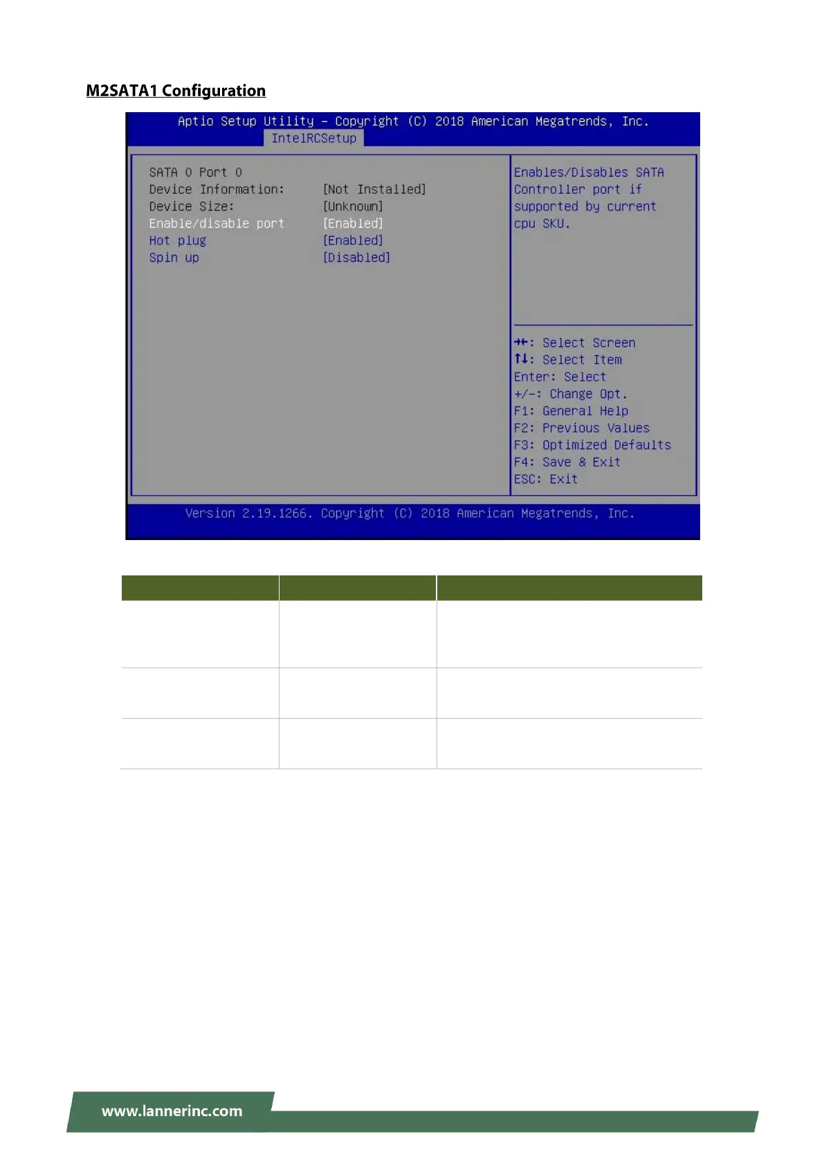 Lanner NCA-1516 - M2 SATA1 Configuration; M2 SATA1 Port Enable;Disable; M2 SATA1 Hot Plug and Spin Up