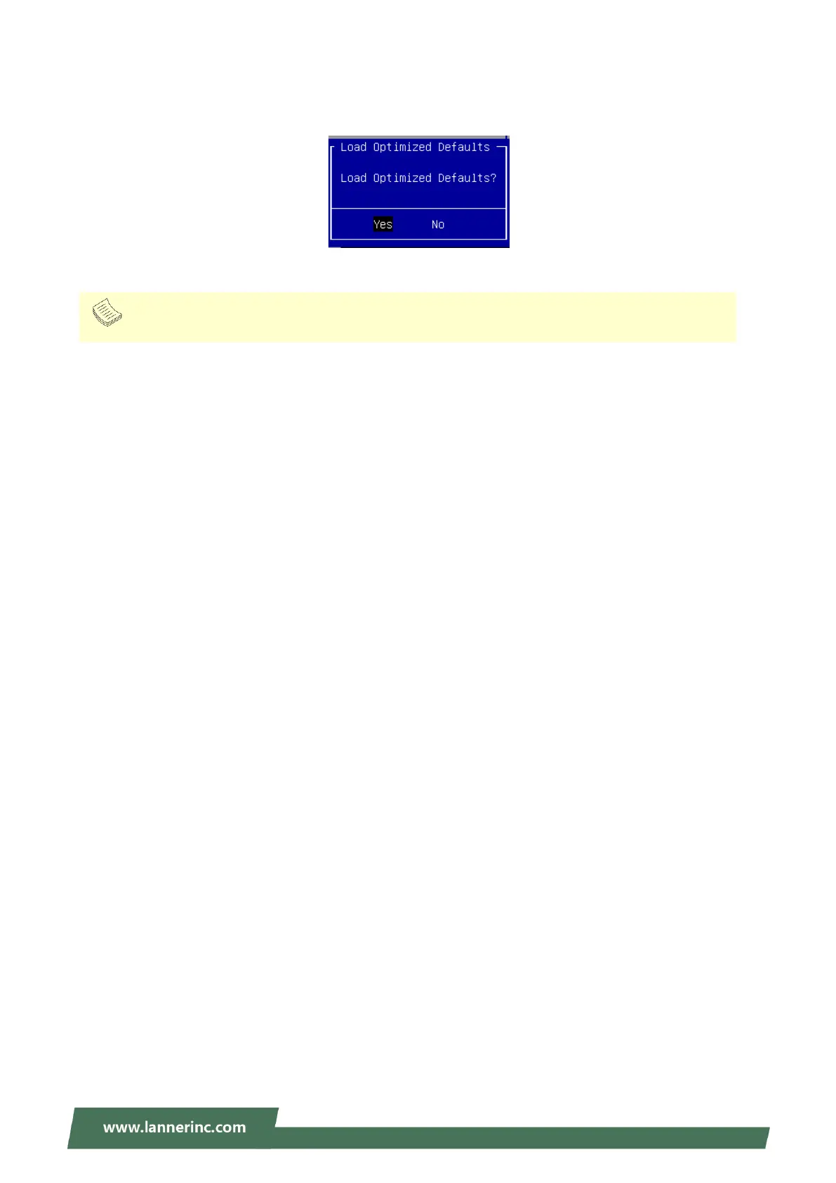 Lanner NCA-1516 - Restore BIOS Defaults; Load Optimized Defaults Action