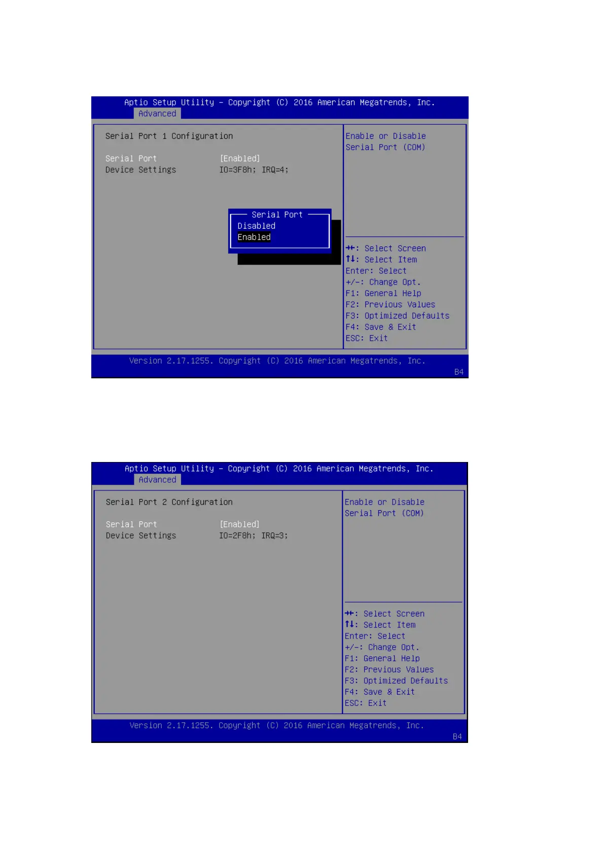 Once Serial Port 2 is accessed, you may press “Enter” to enable or disable the Serial Port 2