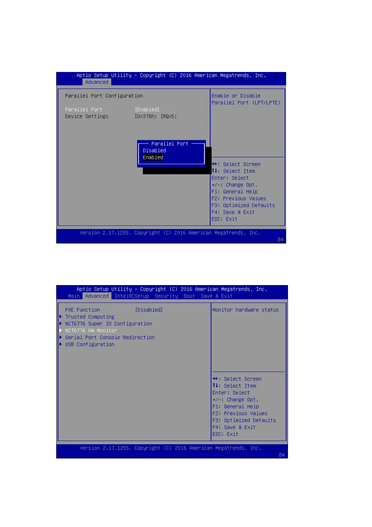 Once Parallel Port is accessed, you may press Enter to enable or disable the Parallel Port.