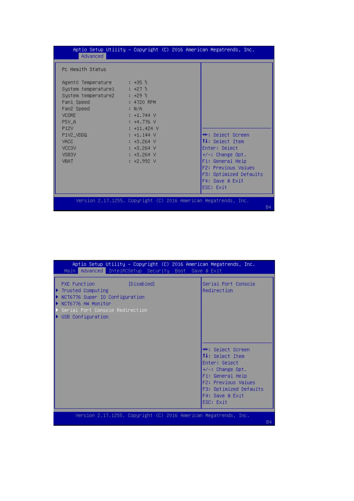 This option allows you to configure parameters about serial port console redirection. Press