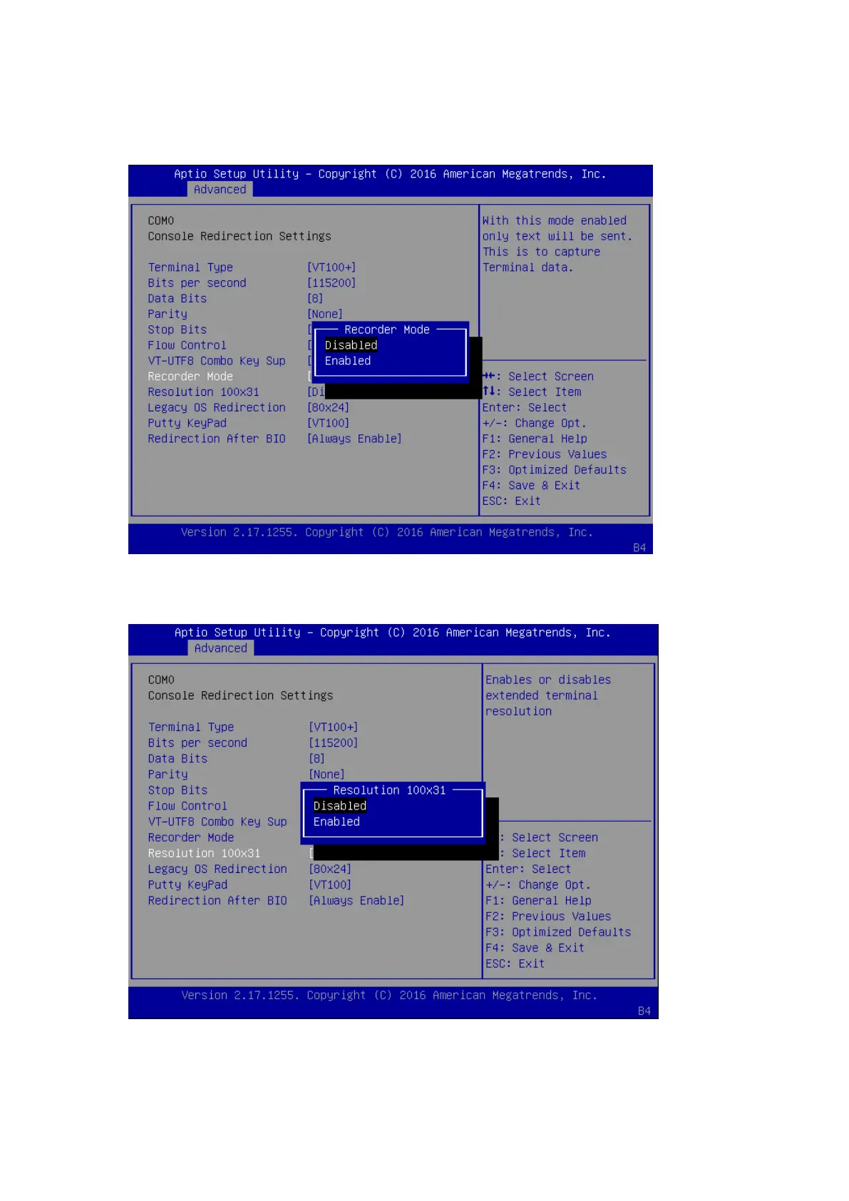 Resolution 100 x 31: select Enable or Disable for extended terminal resolution.