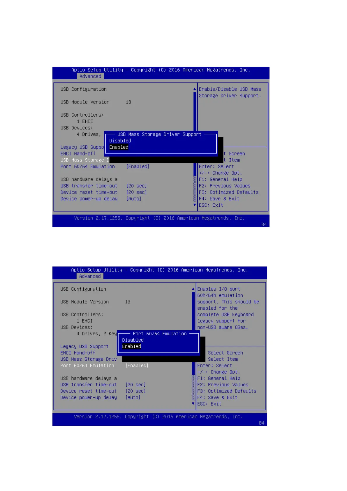 USB Mass Storage Driv: this option allows you to enable or disable USB mass storage