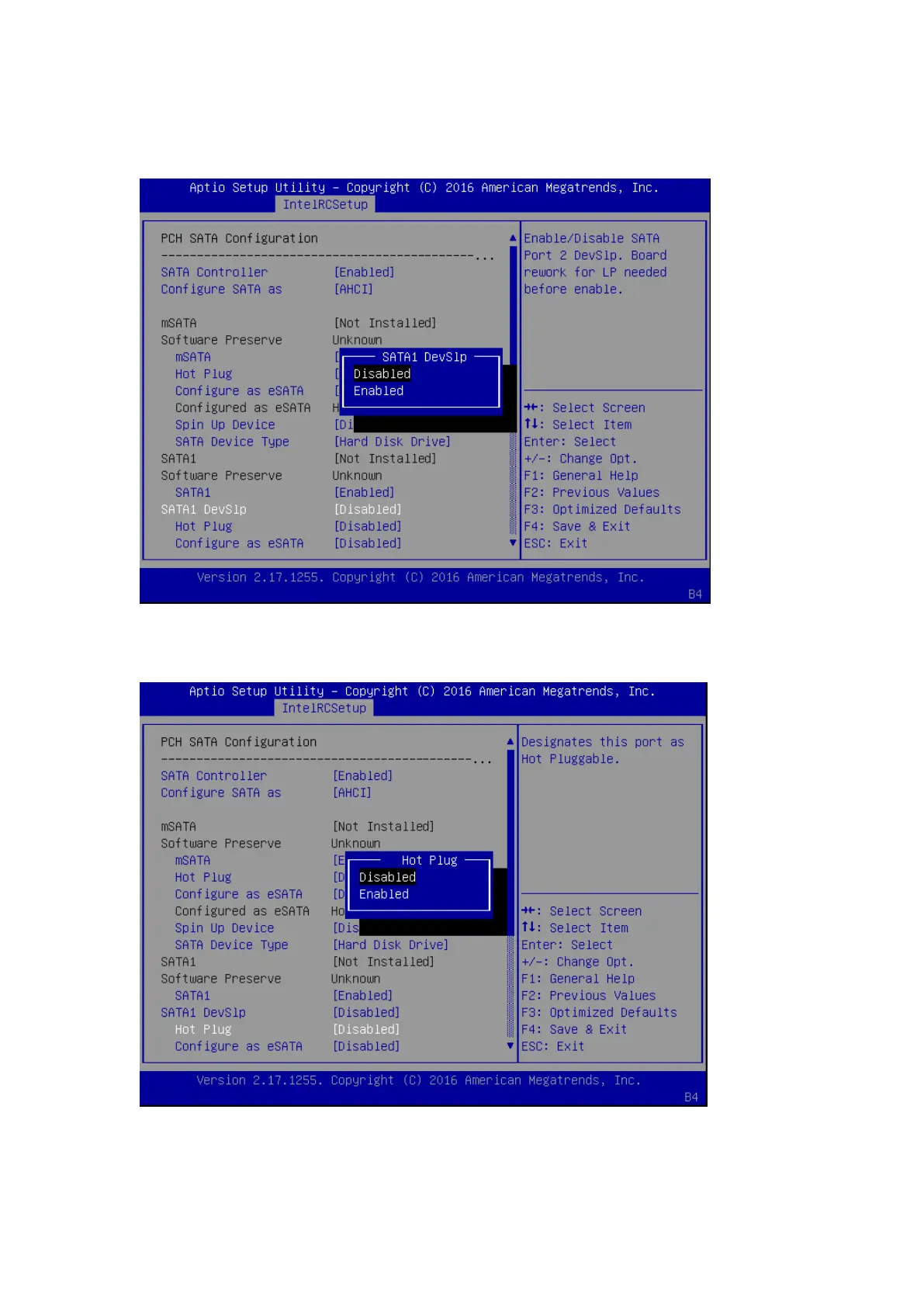 SATA1 DevSlp: enable or disable the SATA port Device Sleep. Board rework for LP is