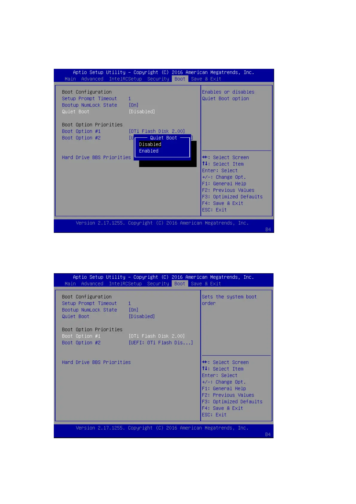 Quiet Boot: this option allows you to enable or disable Quiet Boot. The default is