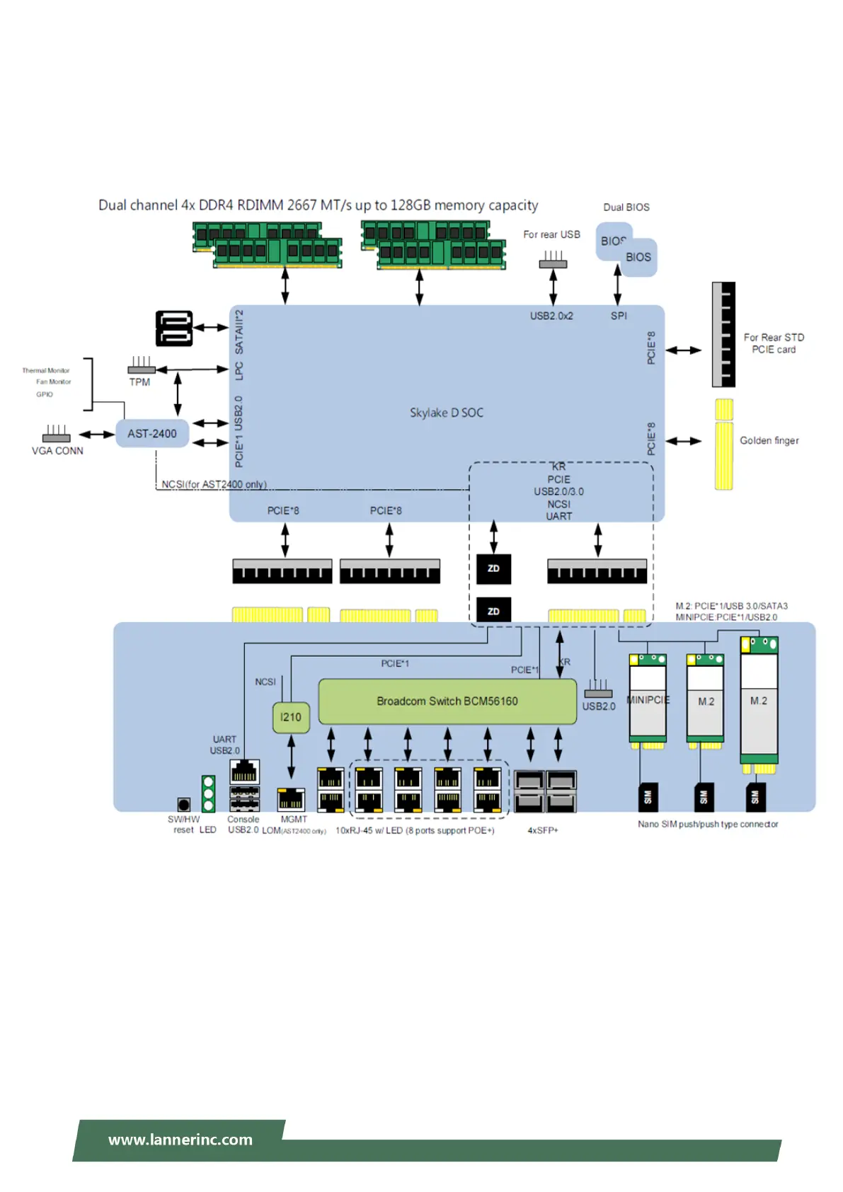 The block diagram indicates how data flows among components on the motherboard. Please refer to the