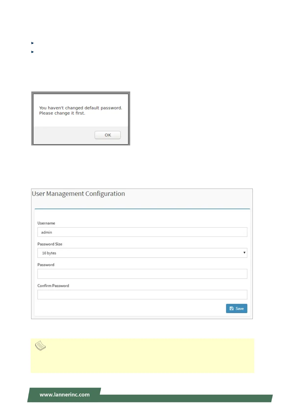 Clicking OK will take you to the User Management Configuration page to set a password.