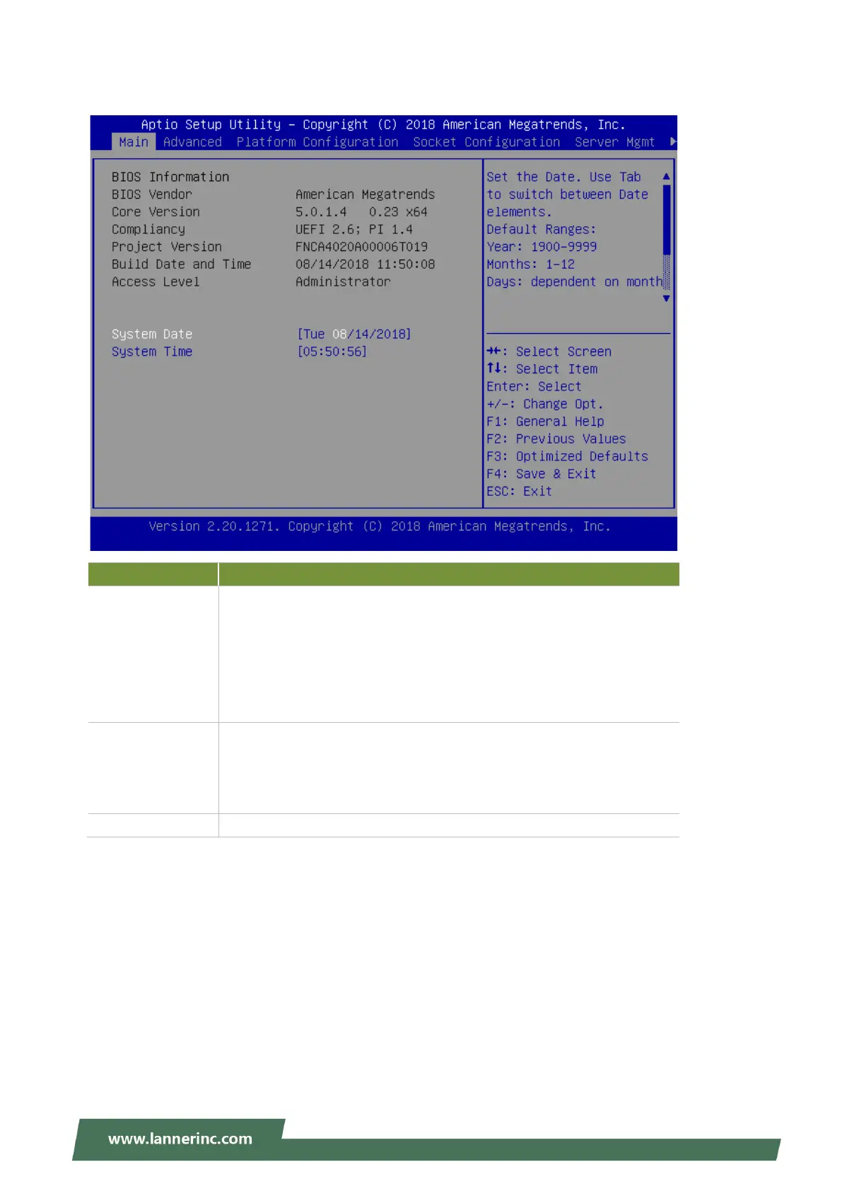 System Time To set the Date, use <Tab> to switch between Date elements.