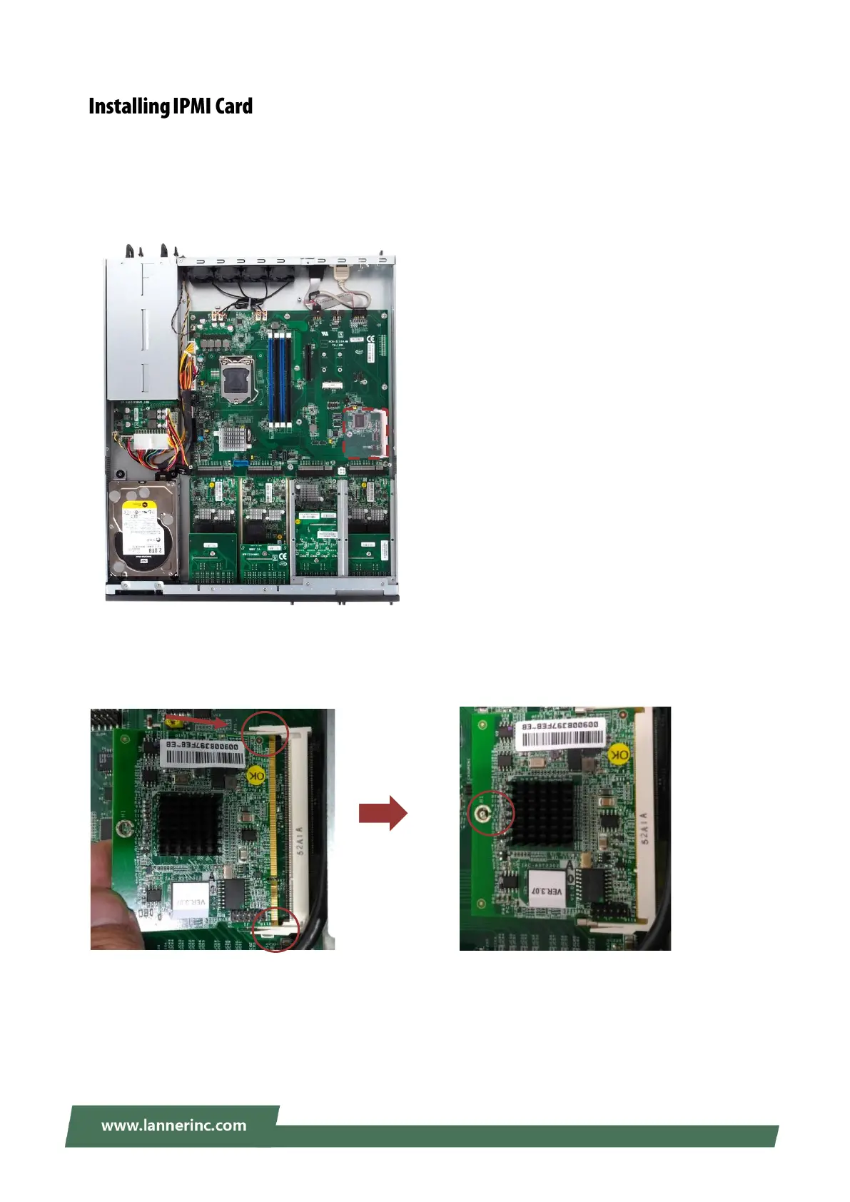 2. Insert an IPMI card into the socket and then gently press it down. Remember to align the gold fingers