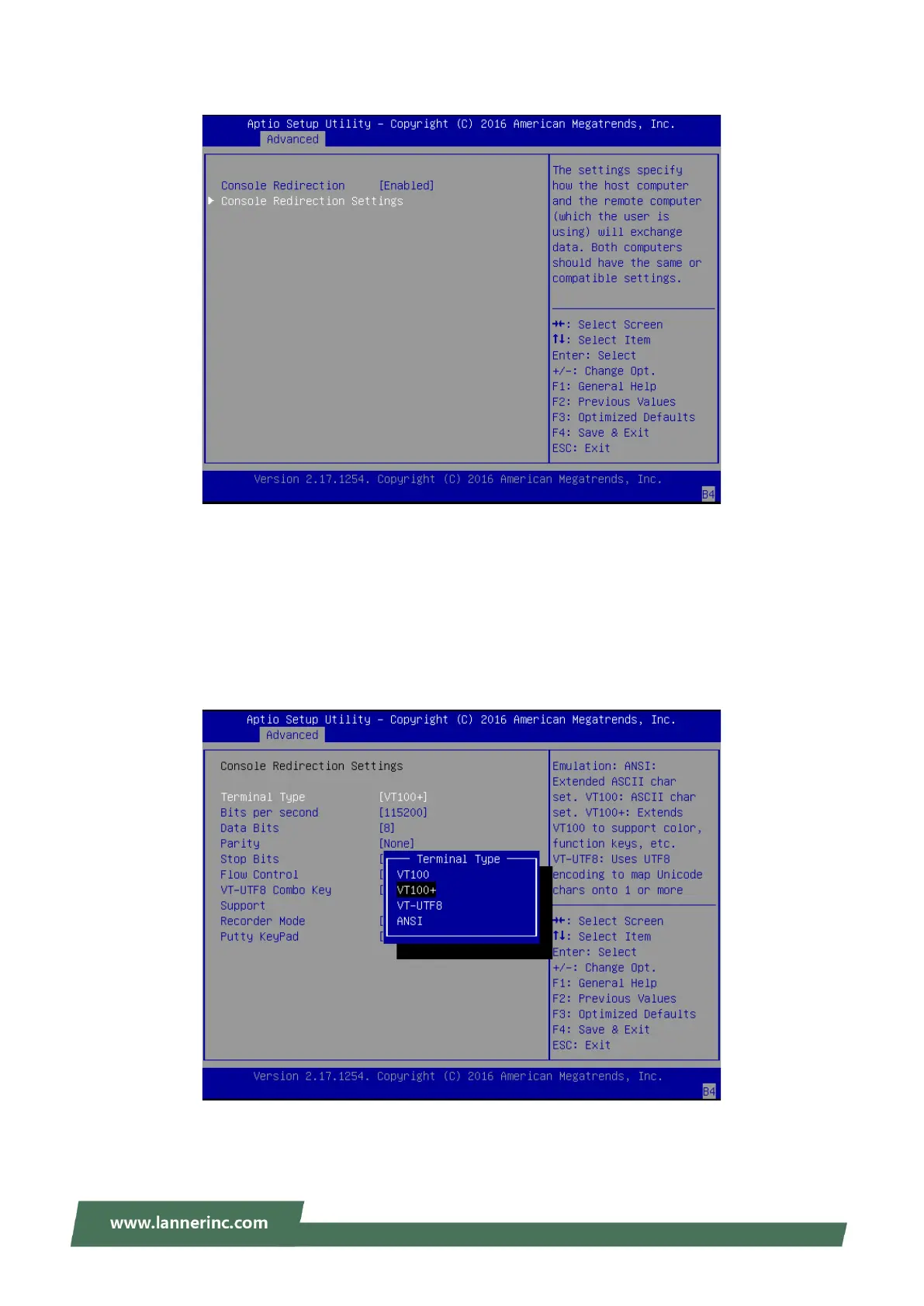 Console Redirection Settings: select this item to enter the setting sub-menu.