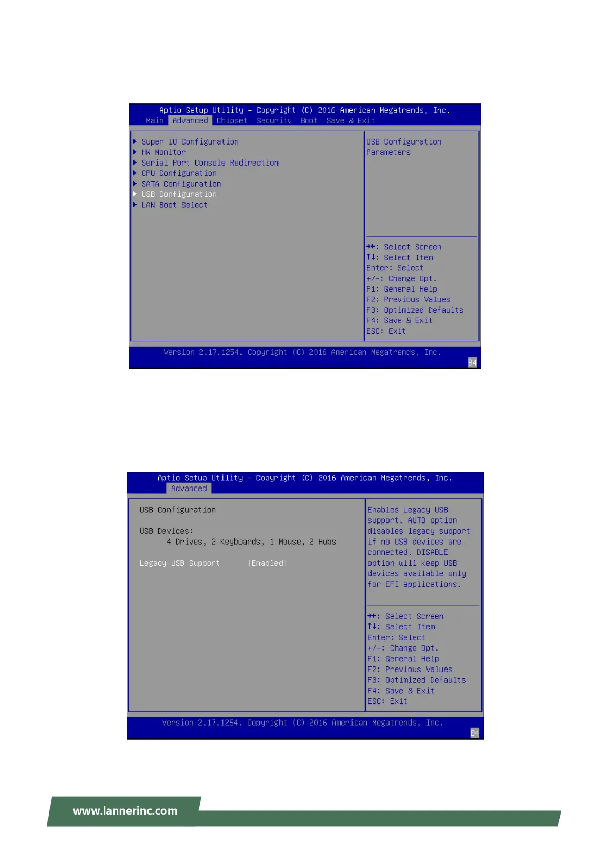 Lanner NCA-5210 - USB Configuration; USB Devices; Legacy USB Support