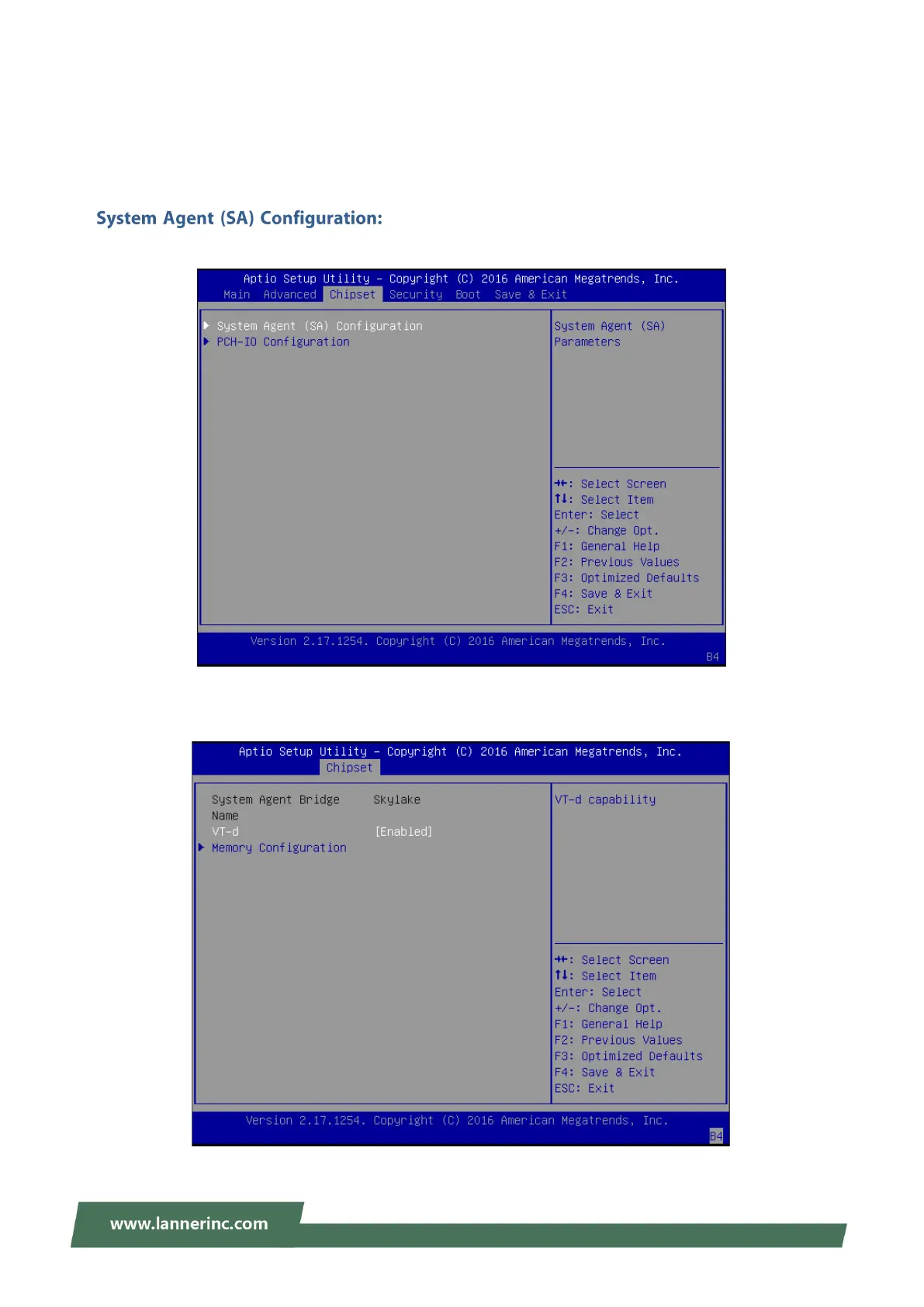 Lanner NCA-5210 - Chipset; System Agent (SA) Configuration; VT-d